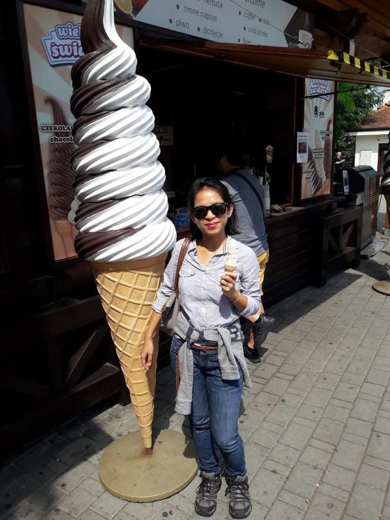 2 ônibus, 45 minutos por 5 zloty por pessoa (1,2 euros) depois chegamos em Wieliczka. Almoçamos no primeiro restaurante que encontramos no nosso caminho (e mais ou menos no Google). Será o primeiro pierogi e o último da nossa vida, é tão pouco comestível 😀