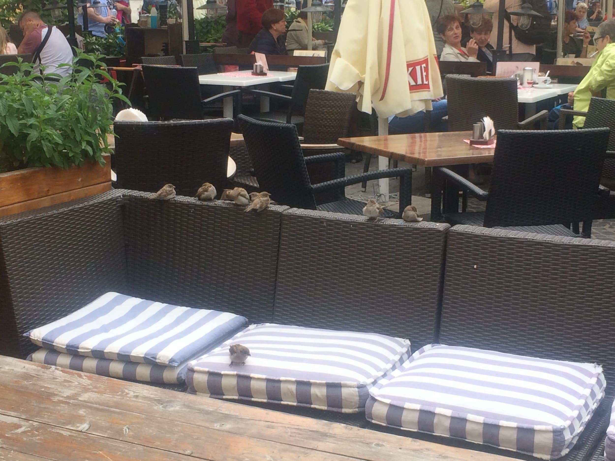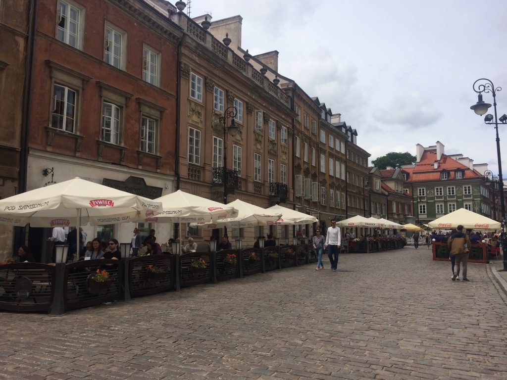 Rynek Square (acima) é o meu lugar preferido em Varsóvia. Há uma pequena fonte no meio, onde pombos e pássaros estão se preparando. Eles são muito giros! No bistrô do restaurante algo ao lado, os pássaros ocupam um sofá sozinho, para secar suas penas