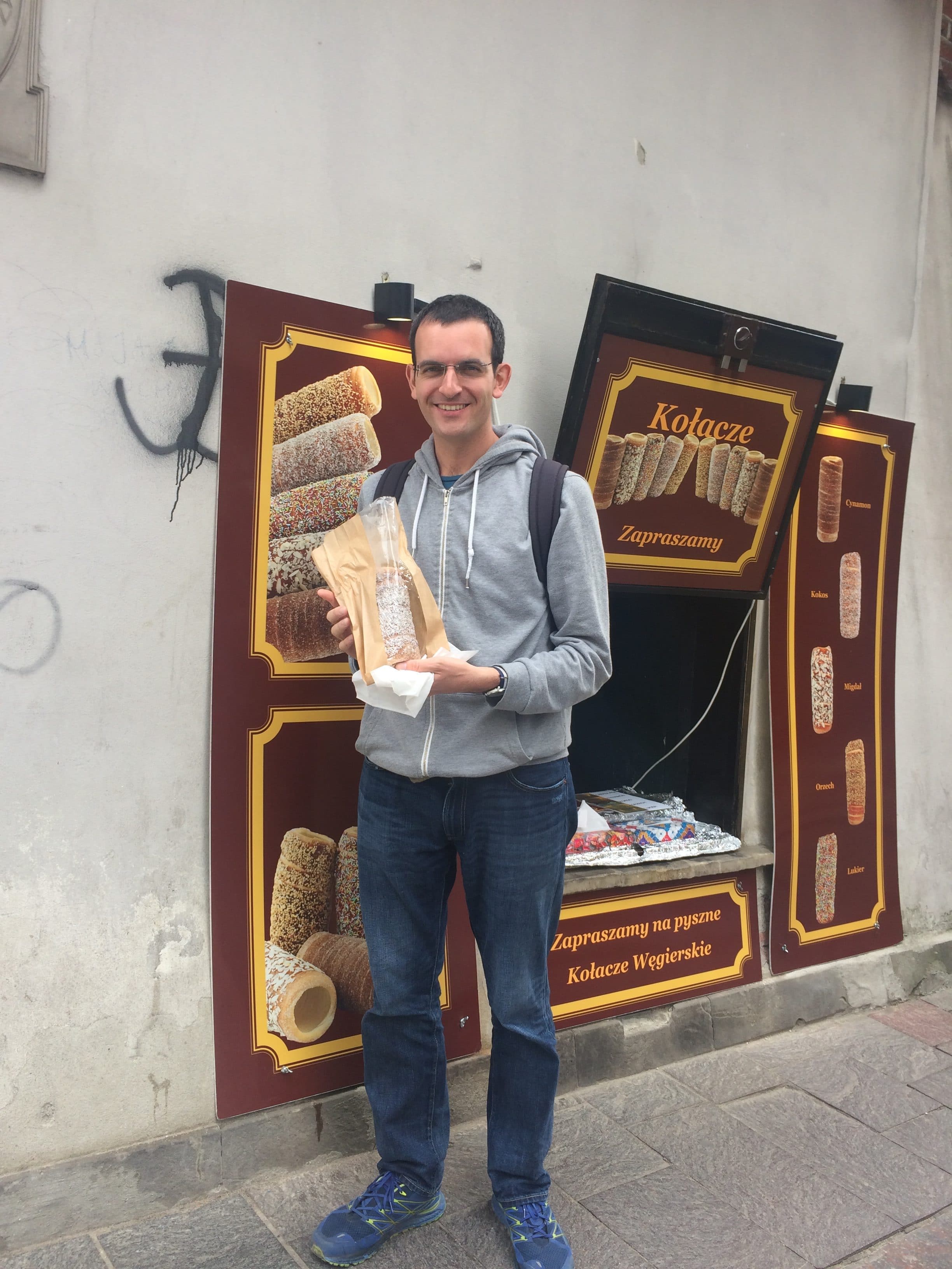 O gelado aqui é delicioso. JB também testou uma espécie de pão cozido em carvão, mas apesar do preço (11 zloty), não é bom de todo