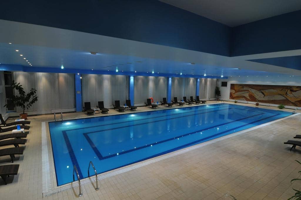 Passamos rapidamente para a área do Wellness (depois de andarmos em círculos – aparentemente a sinalização não é um dos pontos fortes dos Romenos). As piscinas são muito maiores do que nas fotos, e ficamos surpresos ao descobrir uma grande piscina de água salgada