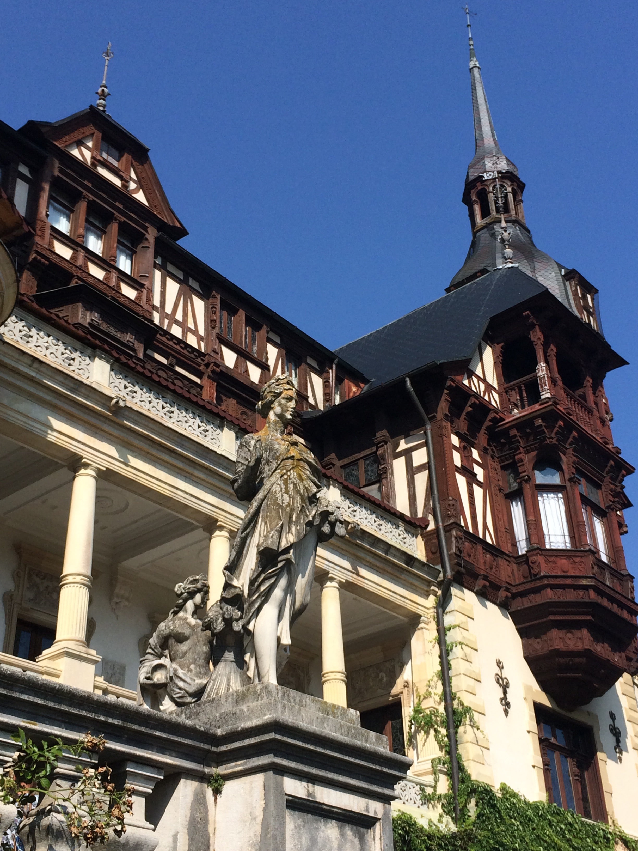 O Castelo Peles é a residência de verão do 1º rei da Roménia. É muito bonita e sobretudo moderna: equipada desde o início com electricidade, sistema de aquecimento, água corrente (e quente). Para o estilo romeno, vamos visitar outras coisas eh, porque esta é construída em estilo alemão