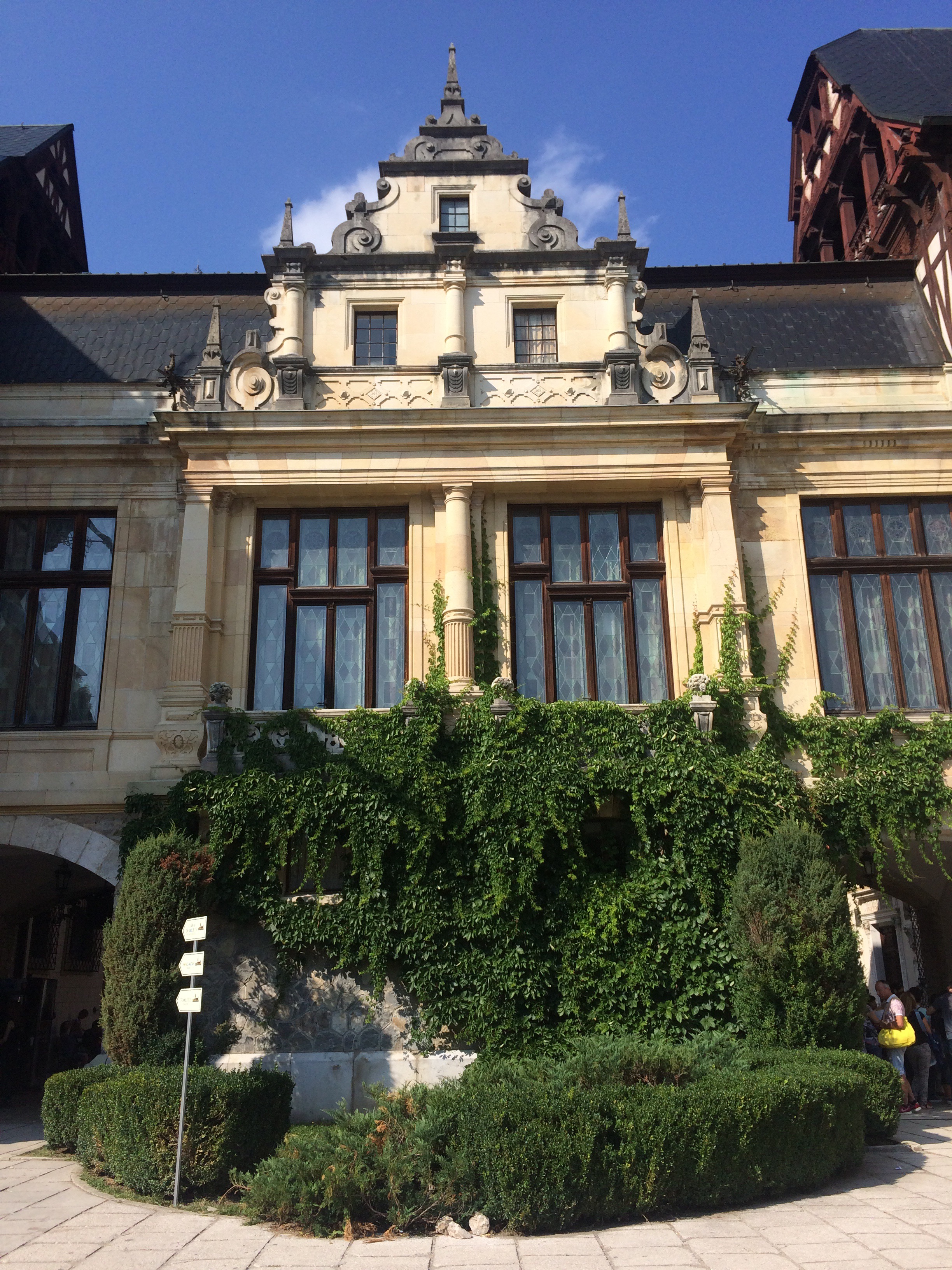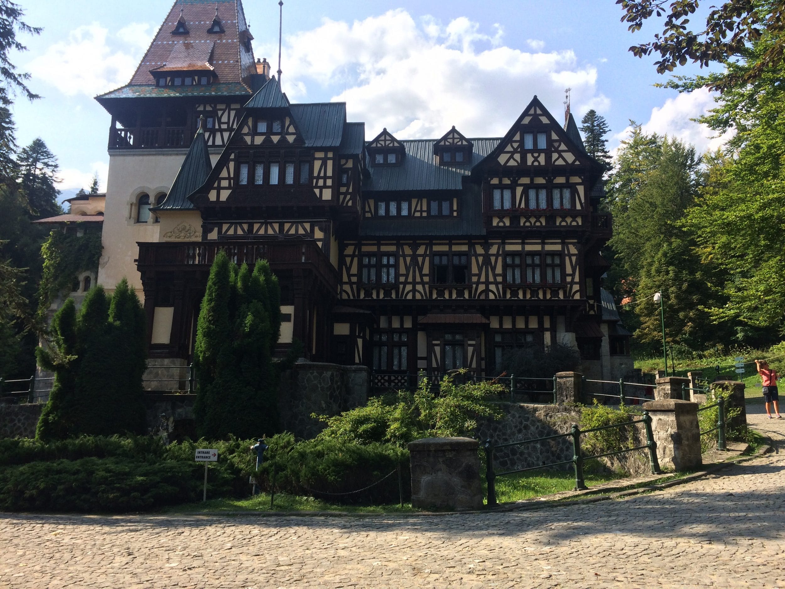 Após 1 hora de visita em um espaço restrito com turistas mal-educados, estamos felizes de finalmente sair dele. Passamos em frente ao outro castelo (Pelisor), reservado para o 2º rei da Roménia. Este é o sobrinho do 1º, porque o 1º não tem filhos. Mas o castelo já está fechado às 16h30, só vamos dar uma olhadela lá fora. De qualquer forma, o JB ainda está doente e mal pode esperar para desfrutar da sua sauna