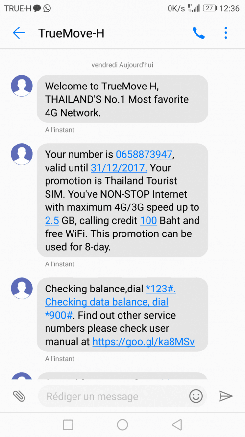 - Um crédito de 50 baht para fazer chamadas e enviar SMS.