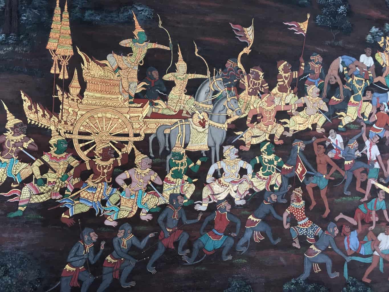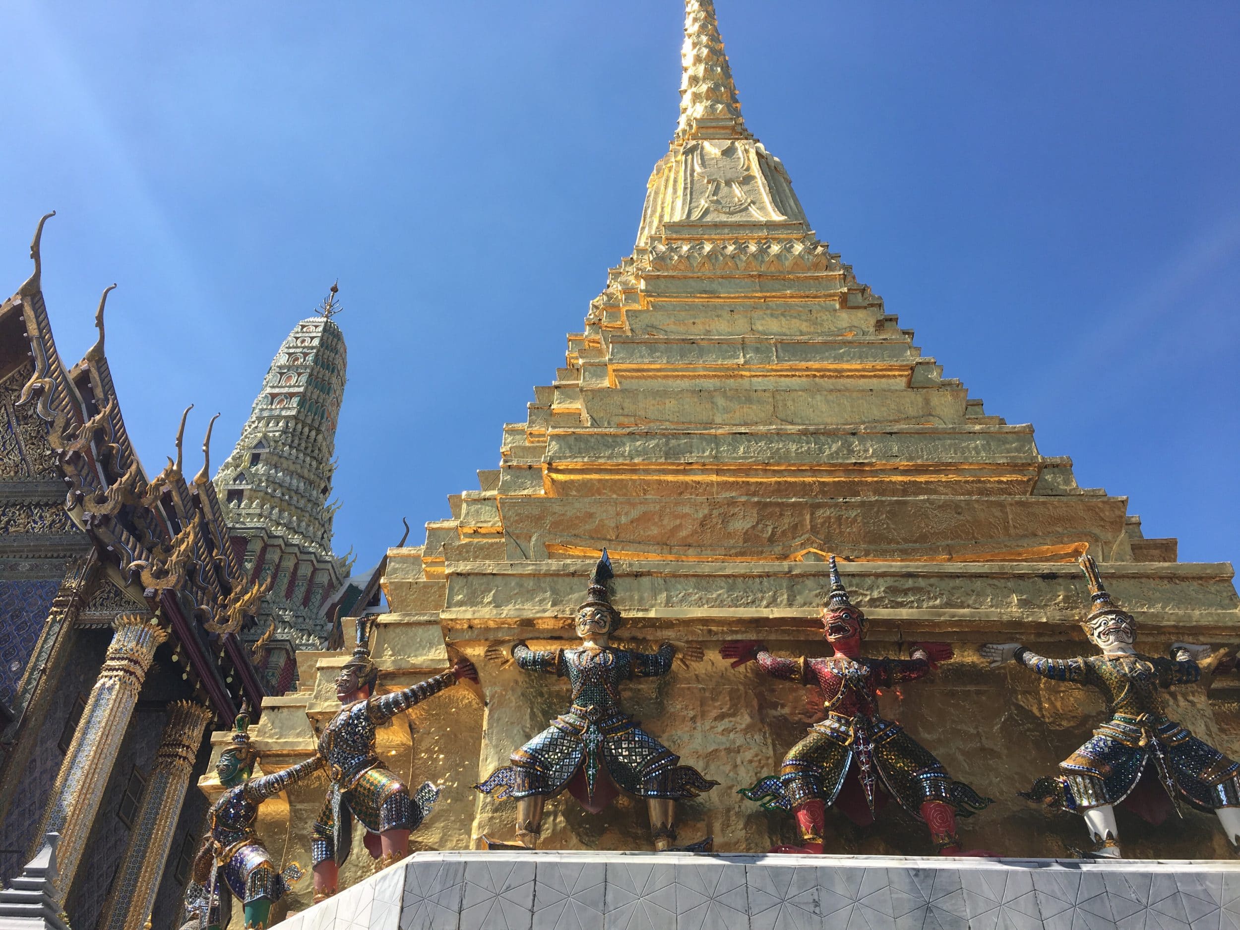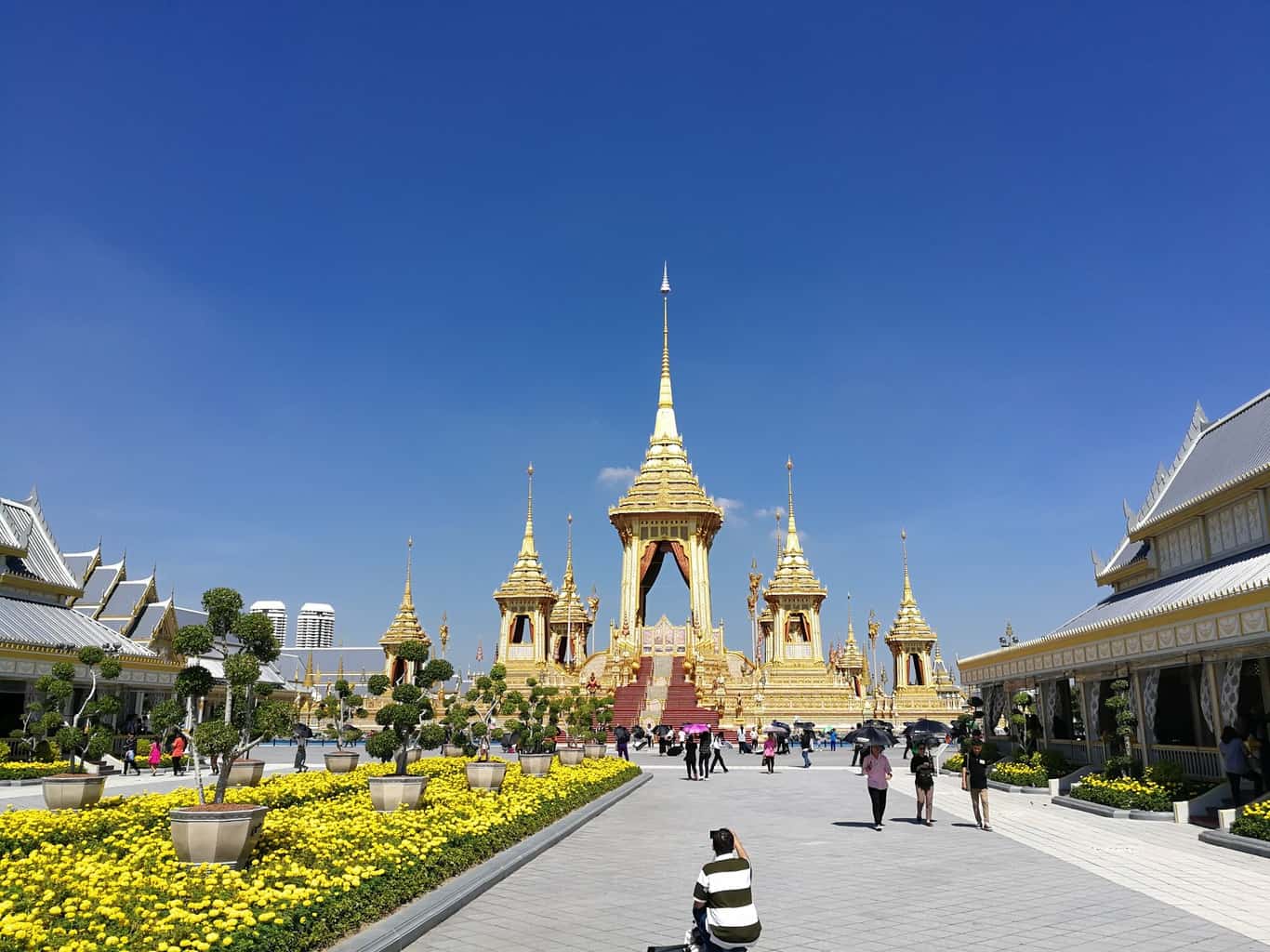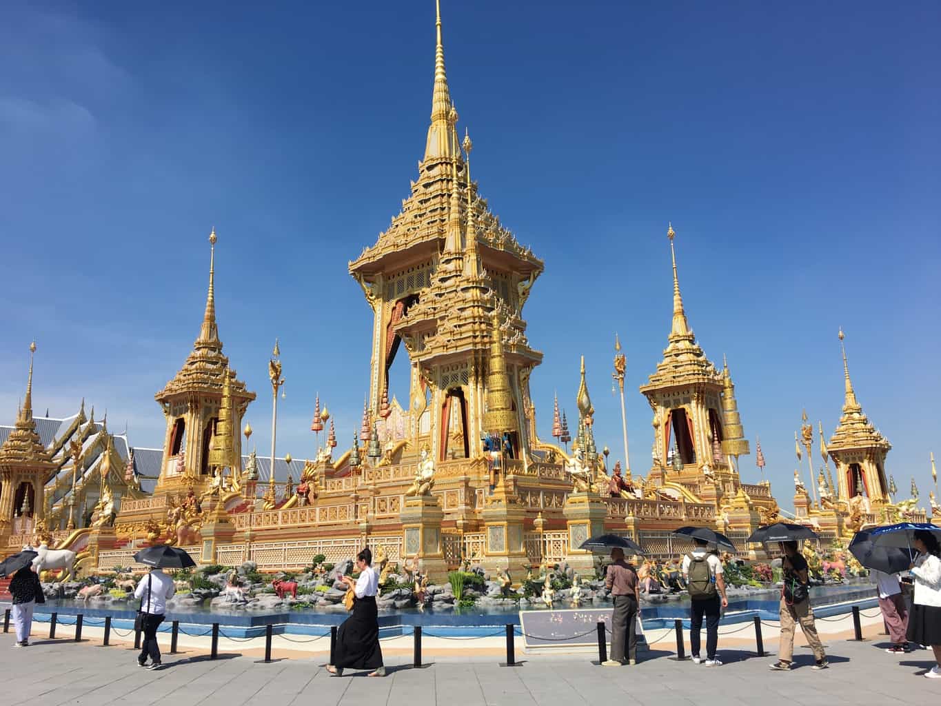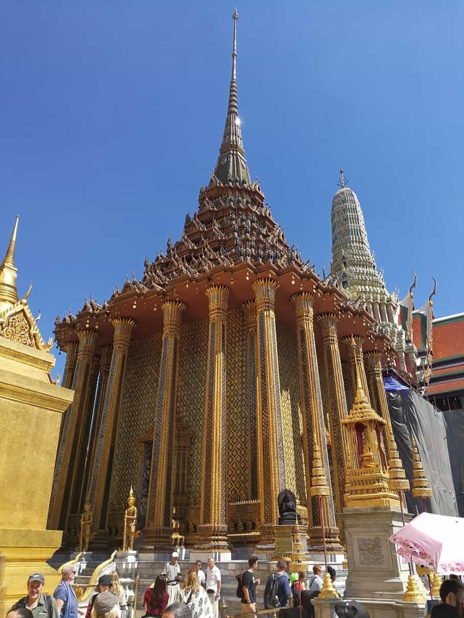 O calor acaba conosco e esta acumulação de ouro e pedras brilhantes queima nossos olhos, estamos motivados a ir e ver o palácio funerário do antigo rei da Tailândia.