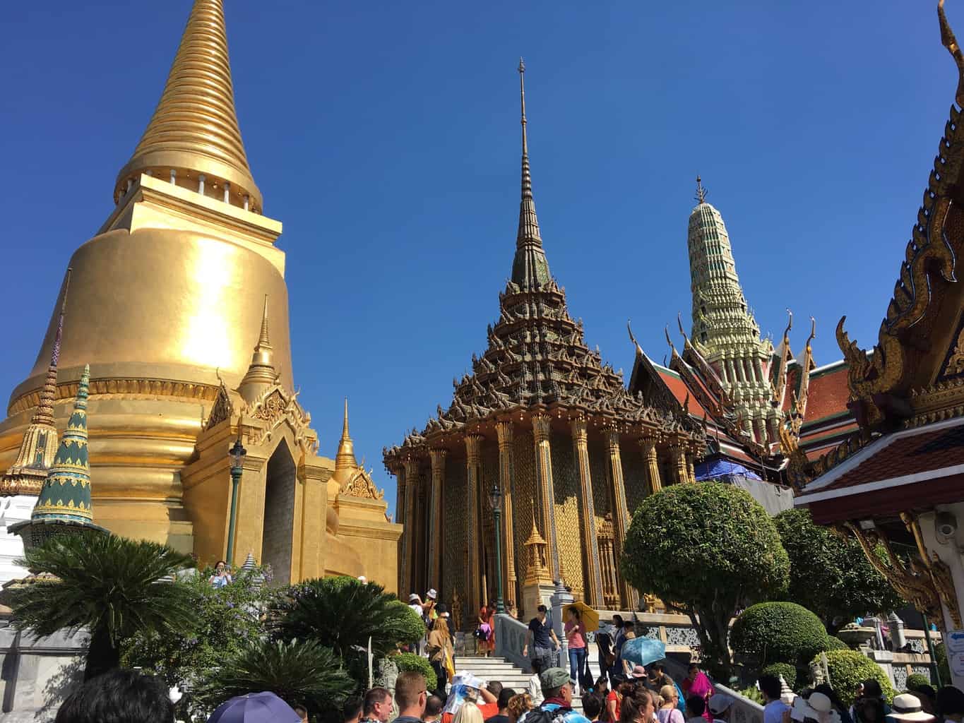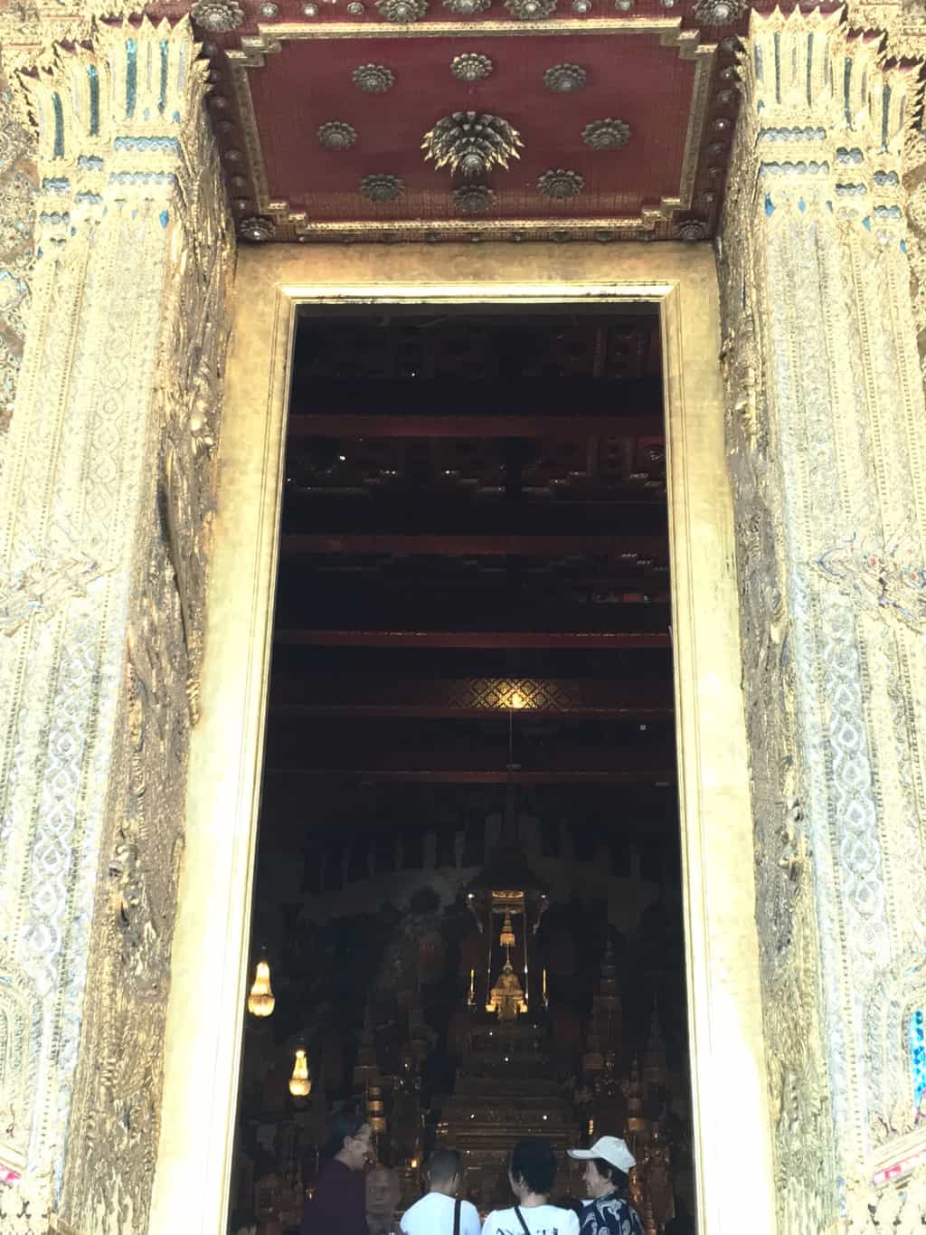 Turistas que não estão totalmente vestidos estão diretamente longe da multidão (com isso quero dizer bezerros e braços descobertos, eles também não estavam em biquínis). Pagamos a taxa de entrada (500 bahts cada, apenas em dinheiro) e descobrimos com surpresa a famosa estátua do Buda Jadeite. É realmente pequeno! Mas é como ir ver o maior diamante do mundo e dizer a si mesmo, quando se vê o seu tamanho “huh, é isso?”.