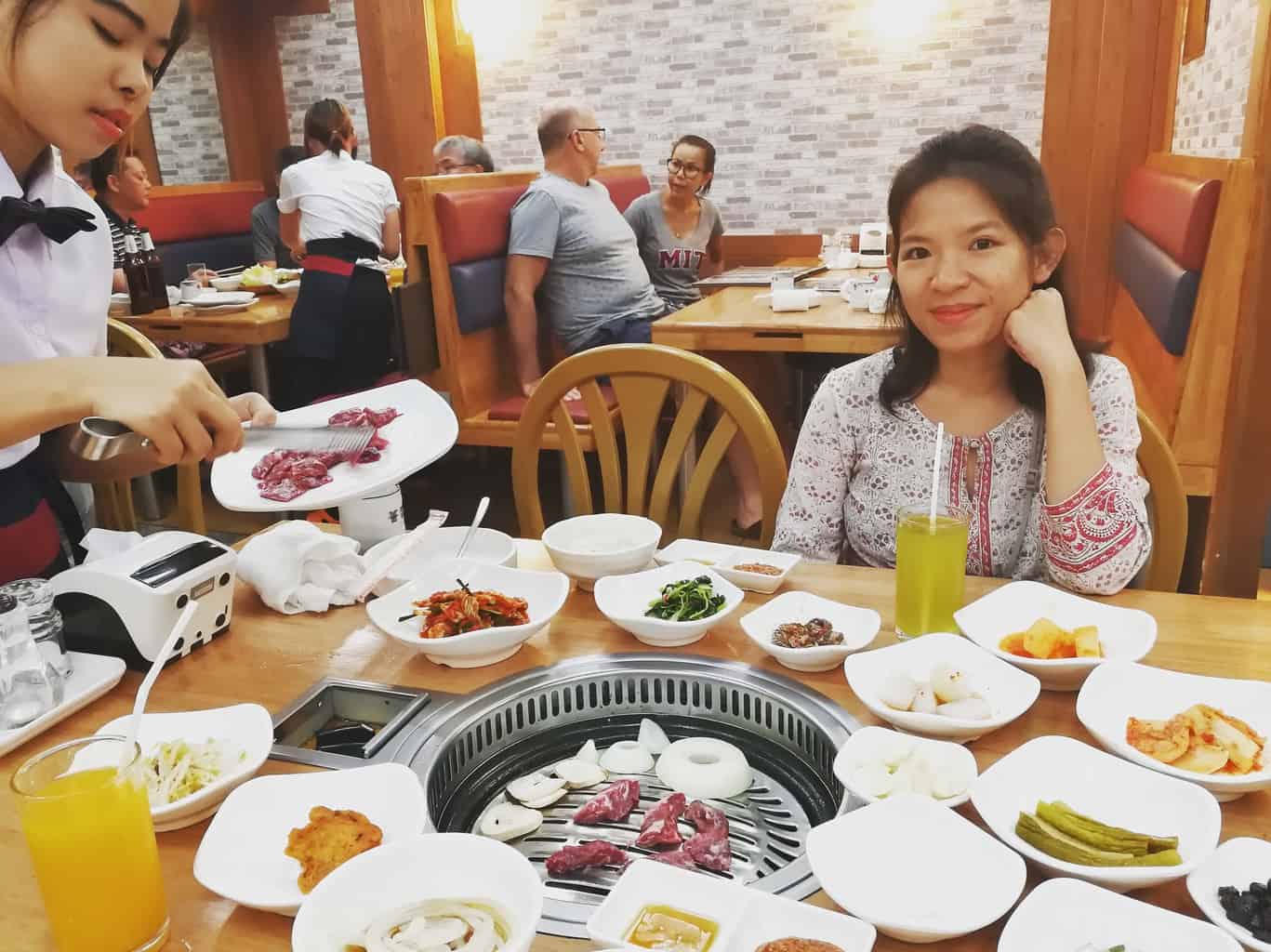 O churrasco no Jang Won’s é impressionante, com um grande número de pratos laterais fornecidos. Por favor, note que na Coreia do Sul, a qualidade dos pratos laterais é tão importante quanto a qualidade do prato. Por outro lado, aqui, tudo está muito picante, eu me vi com a boca inchada no final da refeição. Mas como foi bom! (Além disso, eu nem sequer cuidei da cozinha)