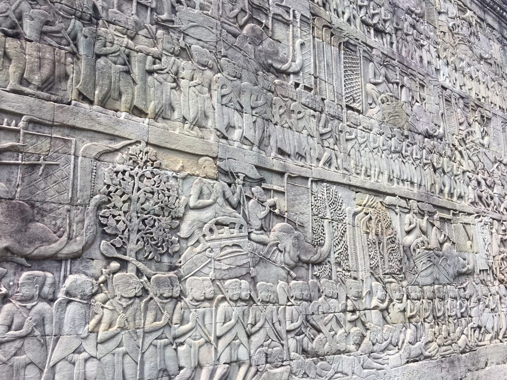 Todas (ou quase todas) as pontes que levam aos templos são decoradas de ambos os lados por um exército de homens puxando a cauda de uma cobra. Isto refere-se a um mito de origem hindu da agitação do Mar de Leite, permitindo no final a produção de uma bebida de imortalidade