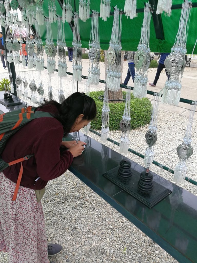 Infelizmente, não podemos tirar fotos dentro deste pequeno templo (é proibido). Mas assim que você entra, você tem que dar a volta para ver os detalhes das duas paredes próximas à entrada. Você pode ver pequenos desenhos de Harry Potter, Hello Kitty, Neo da Matrix, etc. No meio está uma foto do Buda e uma estátua de cera de um monge, tão realista que você poderia ter pensado que ele estava vivo.