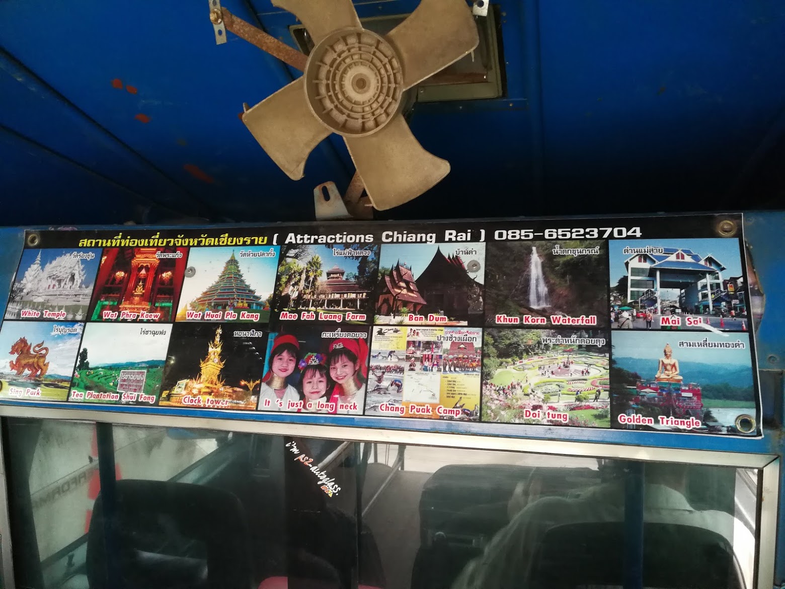 - Nós não visitamos todos os lugares de interesse em Chiang Rai. Coloco abaixo o mapa dado pelo hotel (clique para ampliar) e a lista de pontos de interesse exibida no caminhão azul