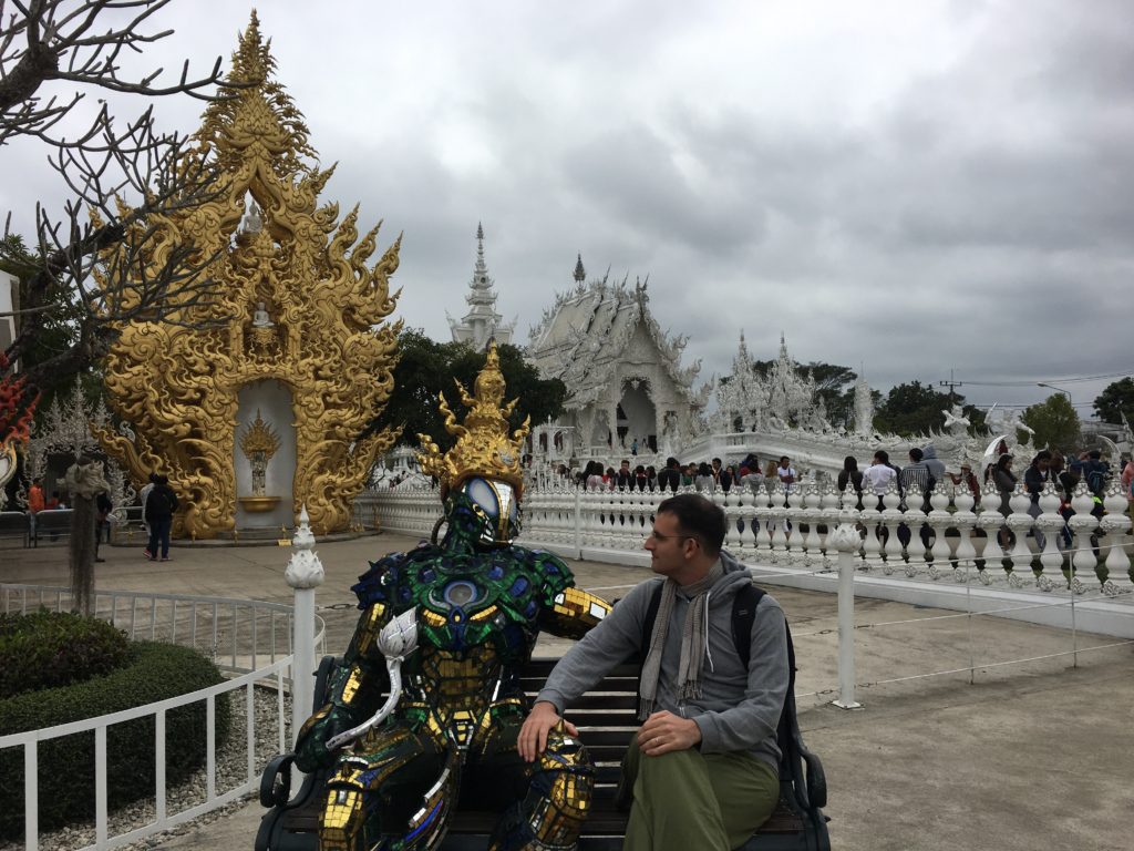 Quando ouço falar do norte da Tailândia, penso imediatamente no templo branco (Wat Rong Khun) que vi em todos os guias de viagem. Esta é uma das razões pelas quais viemos para Chiang Mai, que fica a apenas 3 horas deste famoso templo.
