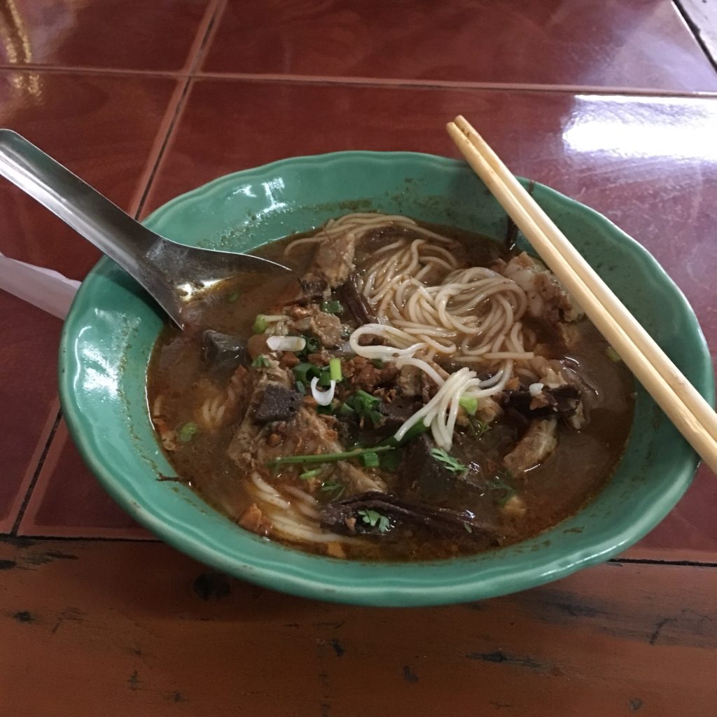 Almoçamos norestaurante vijitta khao soi, um restaurante muito local (nós somos os únicos turistas). Eu gostei muito da Nam Ngeaw deles, uma sopa picante feita com sangue e carne de porco.