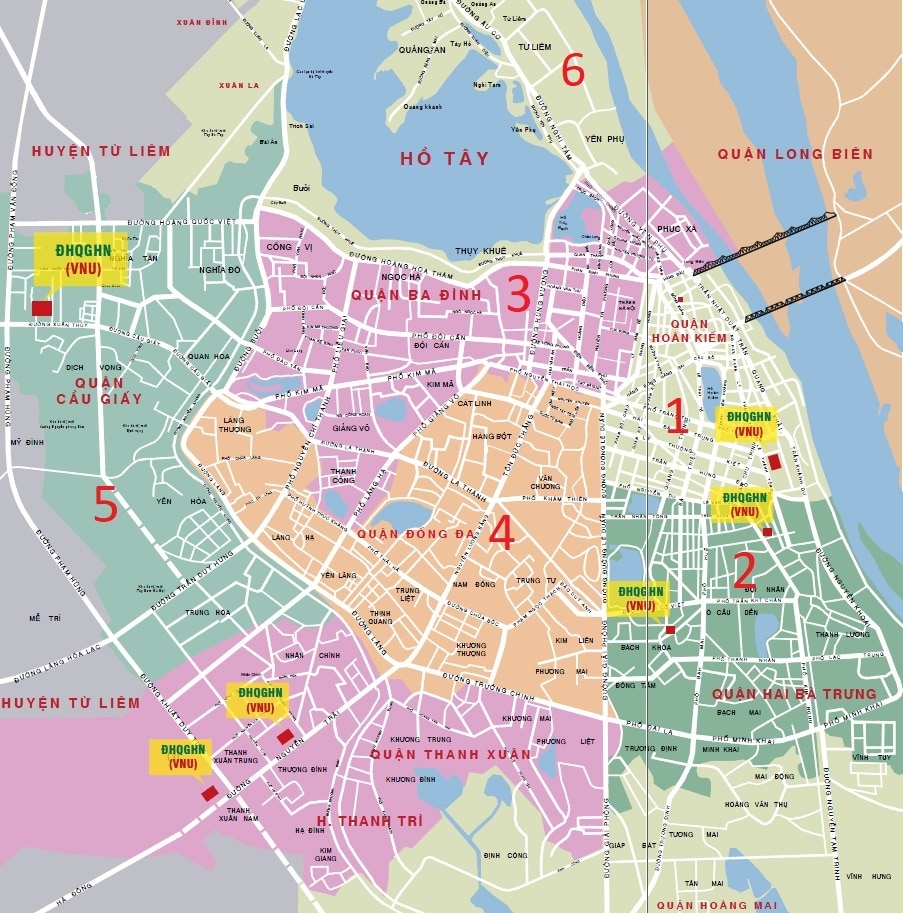 Em resumo, eu recomendo os distritos 2 (Hai Ba Trung), 3 (Ba Dinh) e 4 (Dong Da ), não muito longe do centro da cidade, apesar de serem muito locais, animados e especialmente cheios de boa e barata comida de rua. Mas muitas vezes, a habitação que respeita a lei está mais no bairro 6 (Tay Ho)