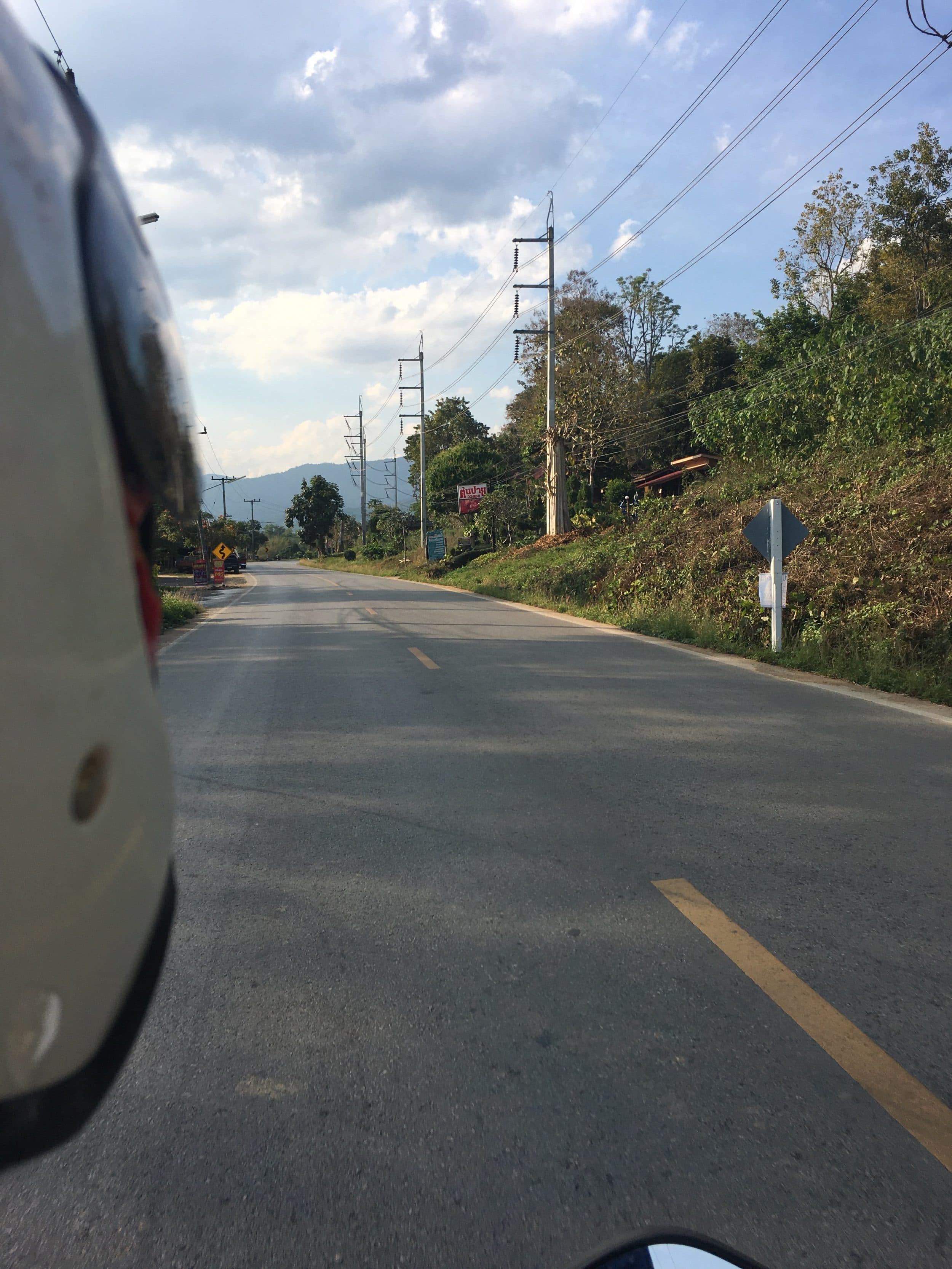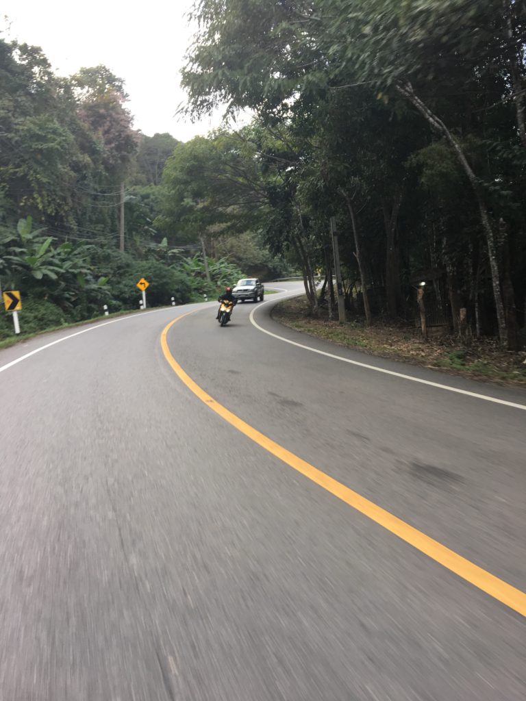 A viagem Chiang Mai – Pai é scooter é muito desagradável e perigosa nas primeiras 1h30 porque pegamos a estrada e os carros nos passam sem piedade, criando rascunhos que podem derrubar motoqueiros inexperientes. No entanto, as restantes 1h30 oferecem-nos paisagens sumptuosas. A estrada é muito menos movimentada mas não menos perigosa por causa das muitas curvas.
