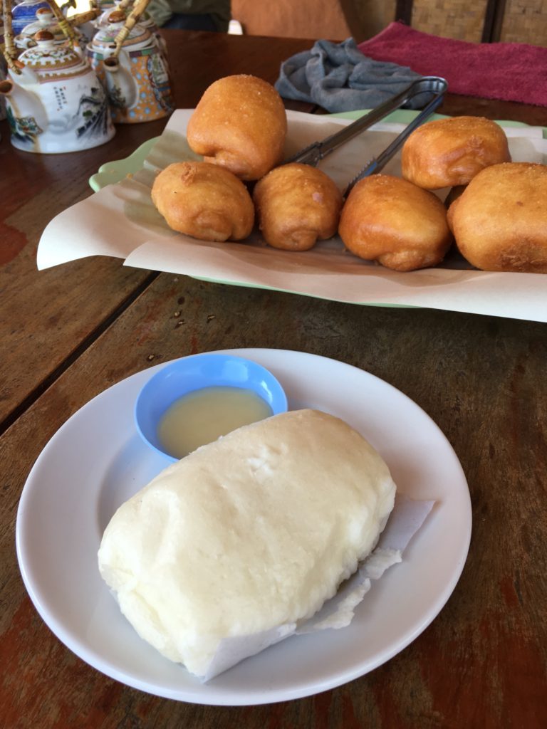 Eu caio para um bao de 10 bahts (uma espécie de brioche), para ser comido com leite condensado.