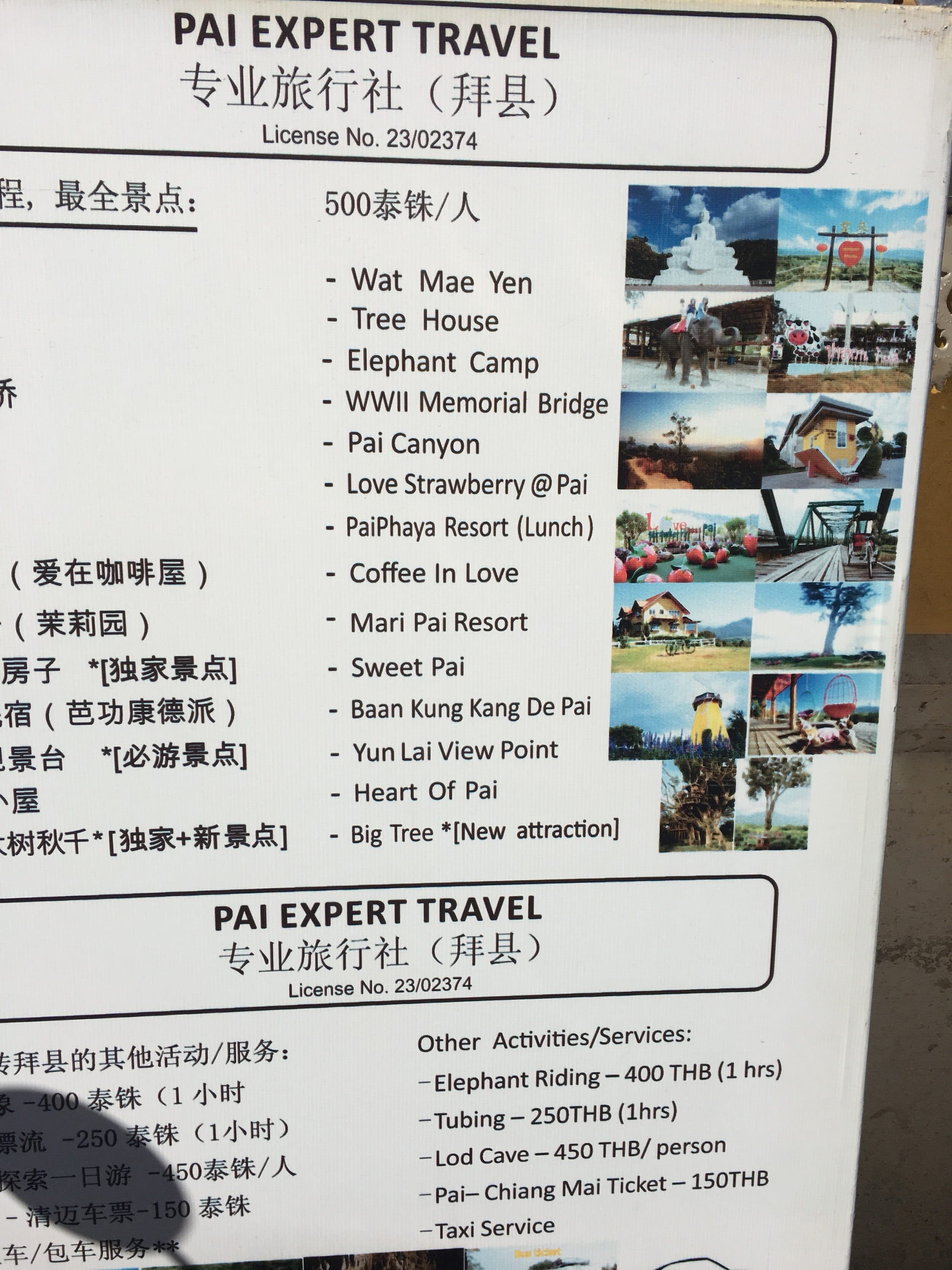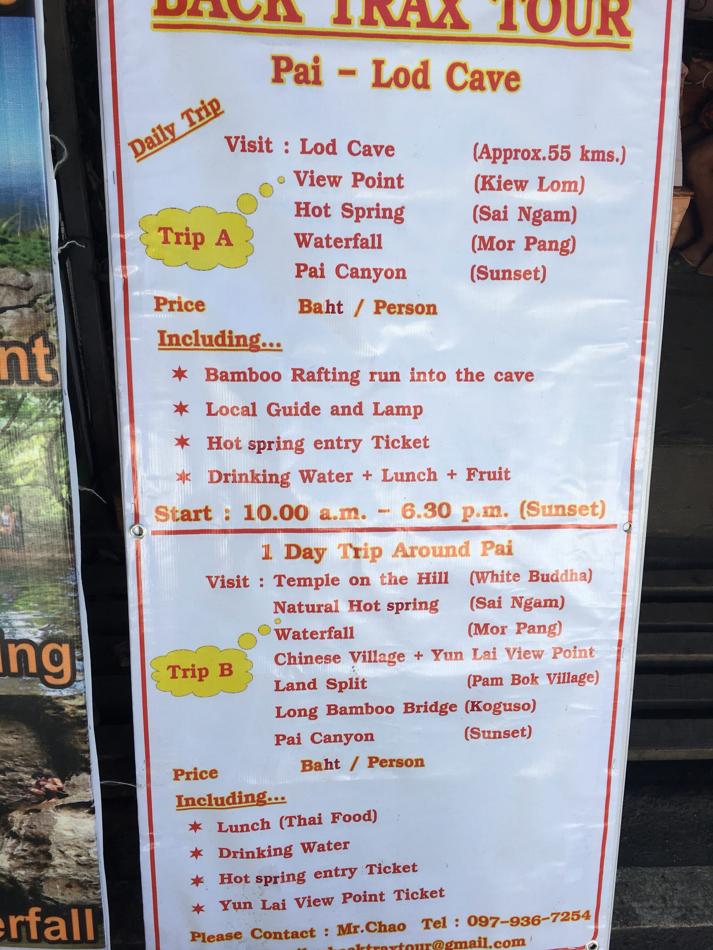- Se você for de ônibus: entre 150 e 250 bahts de ônibus para Chiang Mai – Pai (e vice versa)