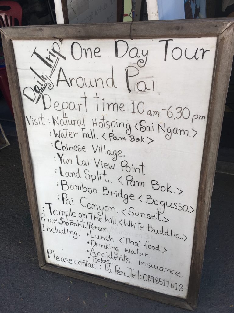 Vamos voltar para a cidade de Pai para comer qualquer coisa. Não há nada de especial na cidade. Felizmente, temos um quarto num hotel lá fora.
