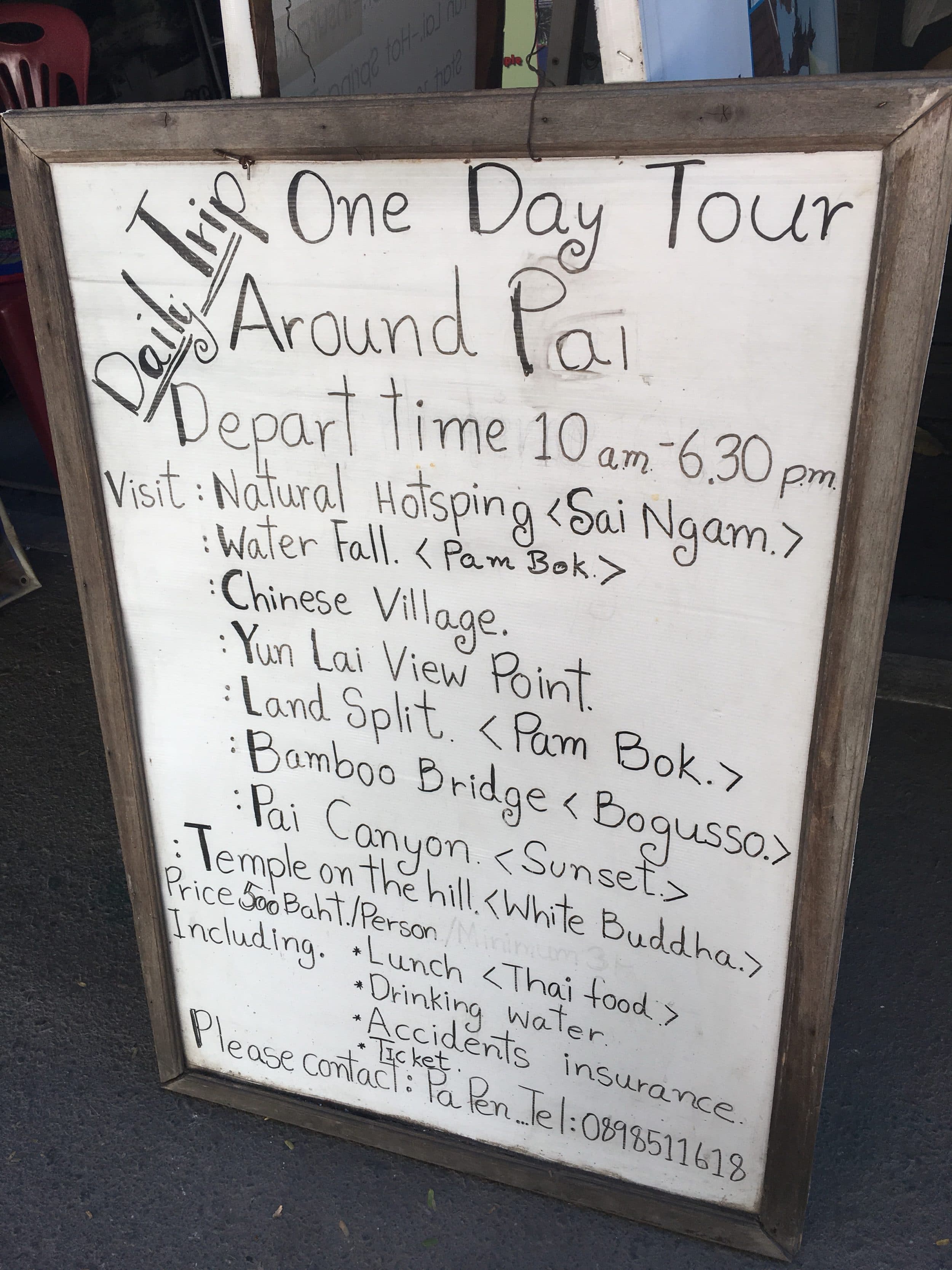- Gasolina: 200 baht para fazer a viagem de ida e volta Chiang Mai – Pai
