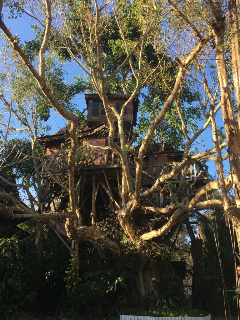 É um hotel, mas é nos passeios de dia em Pai, então por curiosidade nós fomos lá. 20 bahts/pessoa depois, descobrimos a única casa construída sobre a árvore. Não podemos ir lá, obviamente, porque há clientes que pagaram para dormir lá dentro.