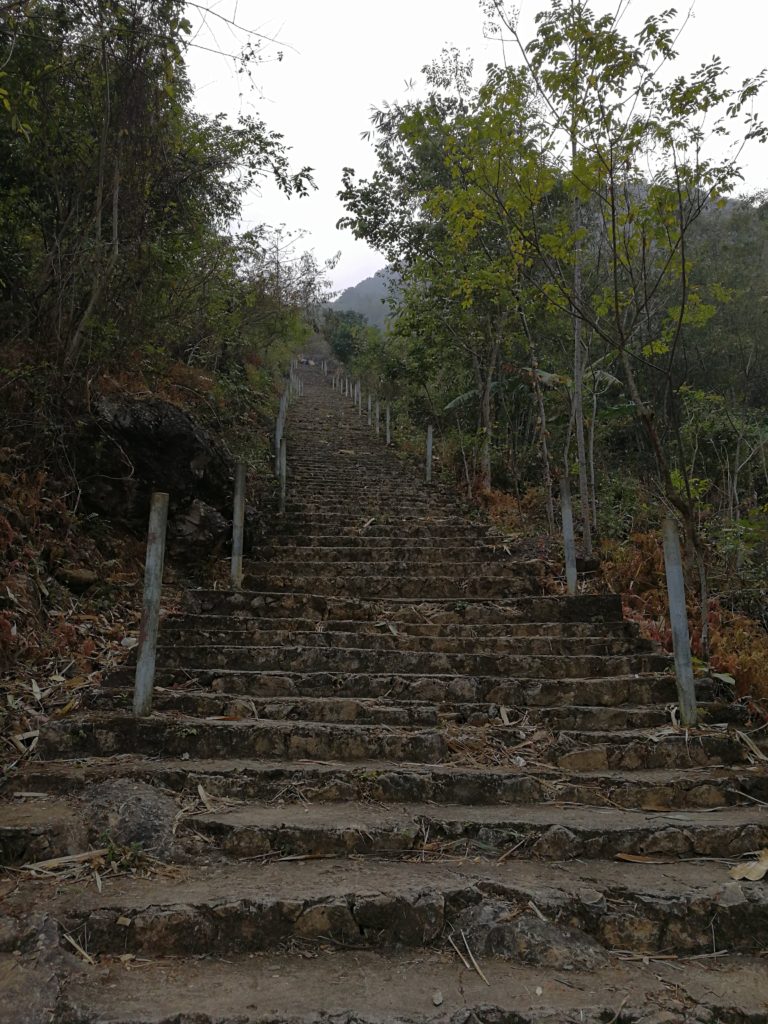 Há uma pequena placa indicando a estrada para a caverna “Hang Chiêù”. Disseram-nos que era bonito, por isso decidimos subir os degraus. Sem saber que há 1200 passos à nossa espera! Só para lá ir