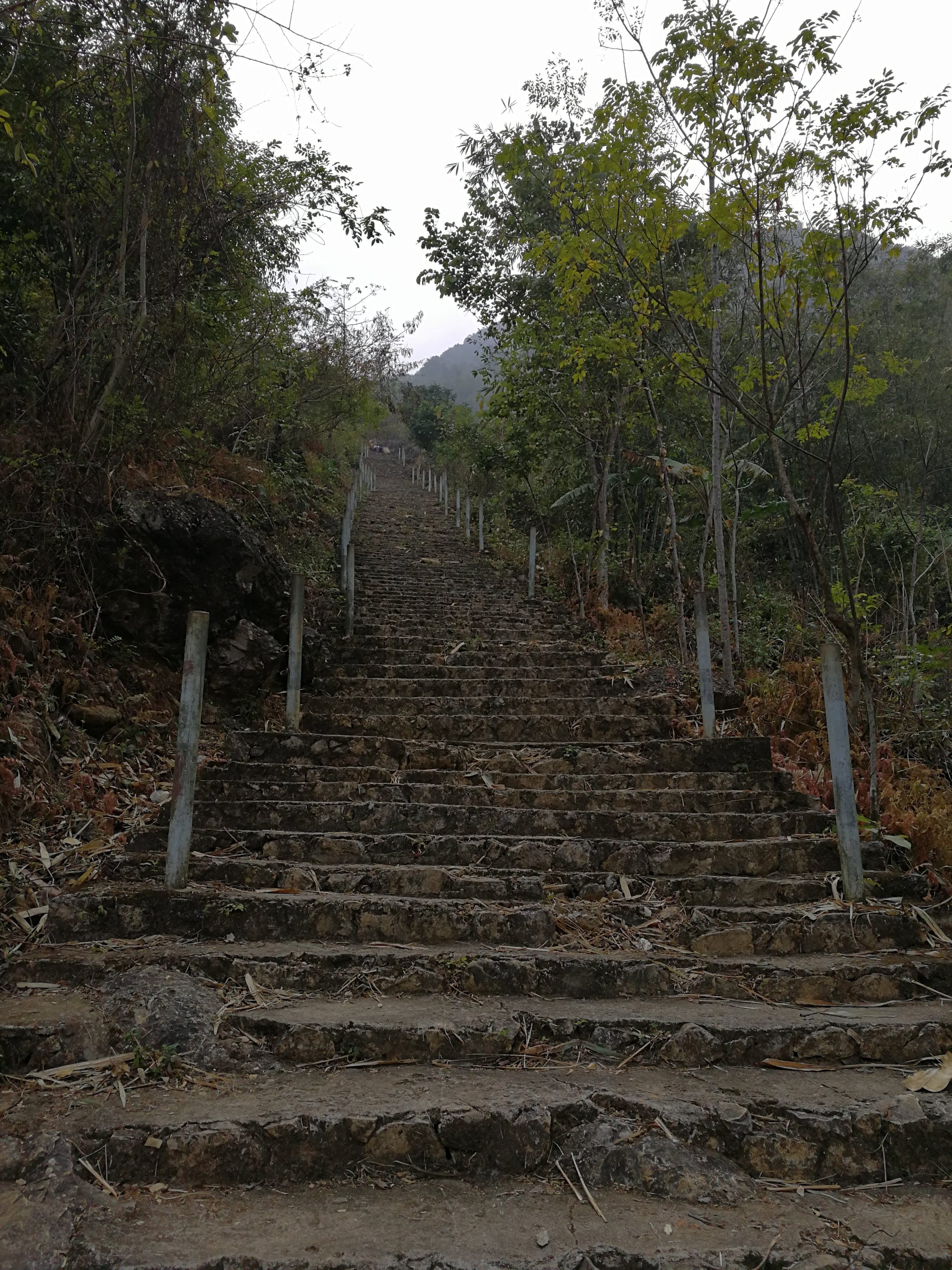 Não sei quanto tempo demorámos a escalar tudo isso. Estamos também muito surpreendidos por nos depararmos com muitos locais que vão e vêm várias vezes ao dia para apanhar bambu (para aquecimento) ou bananas (para alimentar os búfalos no Inverno)