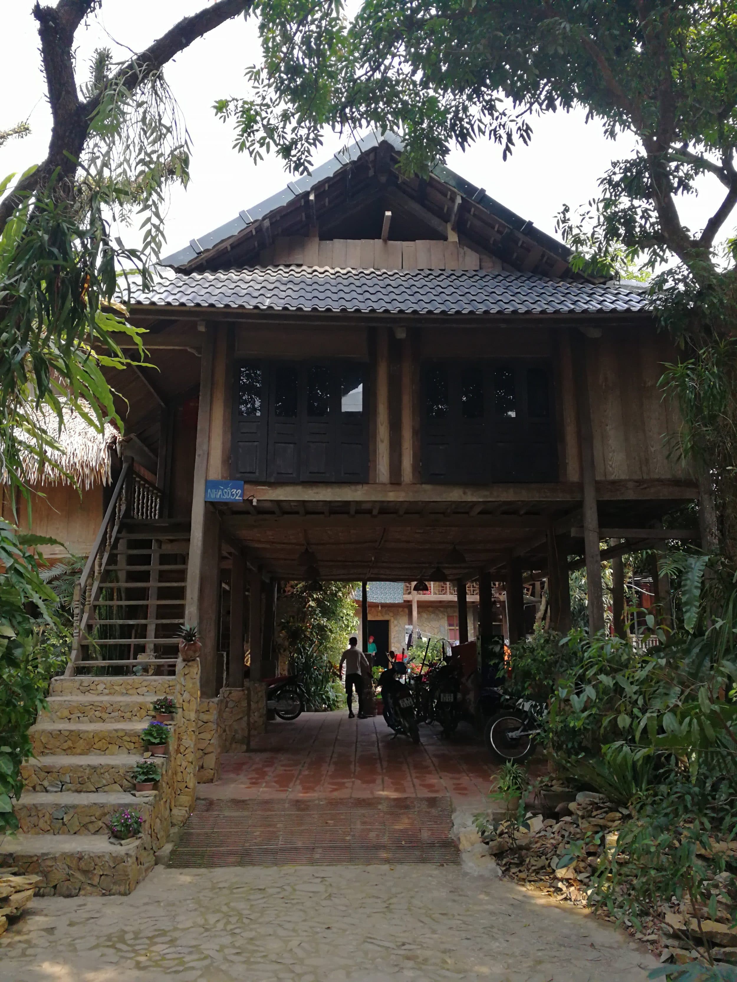 A sua casa de família (número 32 na aldeia Ban Lac 1) é a única com um enorme parque de estacionamento para o nosso carro. Os proprietários são de grupos étnicos minoritários, como a maioria das pessoas no Vietname do Norte. Pẻm é de origem tailandesa, a mesma etnia que o povo tailandês na Tailândia. A língua materna dele ainda se parece muito com a tailandesa de hoje. Nosso guia no Camboja nos explicou que, no início, os tailandeses não tinham realmente seu próprio país, e então eles pegaram um pequeno pedaço de cada país para fazer o seu próprio