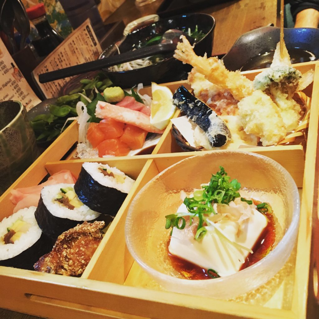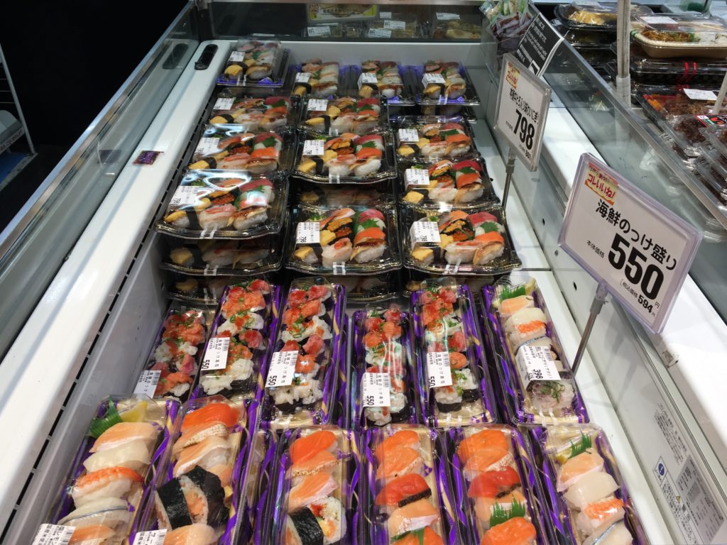 A nossa primeira paragem é o supermercado local. Descobrimos com entusiasmo bentos, sashimis e sushi para levar – por um preço muito acessível (dentro de 4-6 euros). Não vamos morrer à fome, sim!!