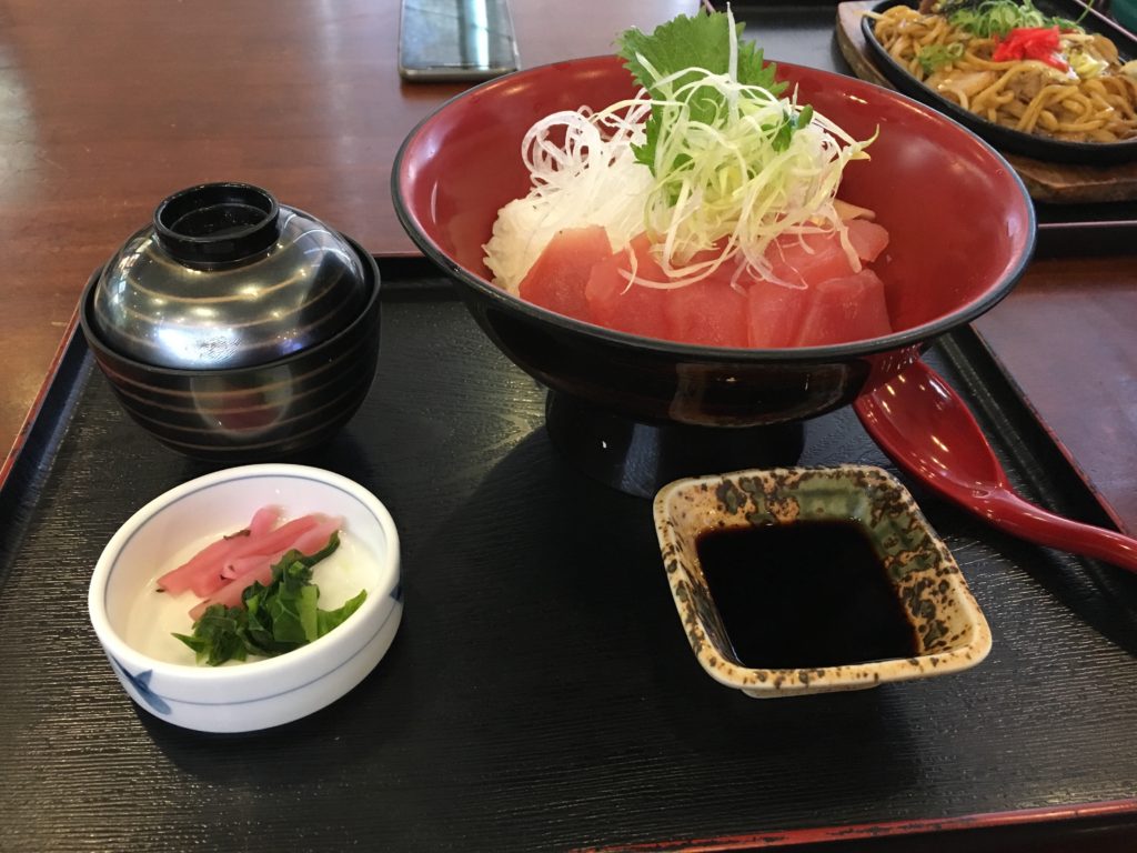 Acabamos em um restaurante com bentos (com sashimis) às 1100yen