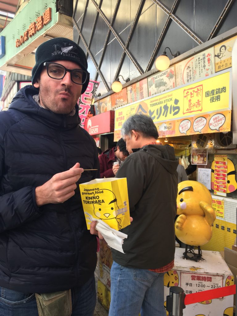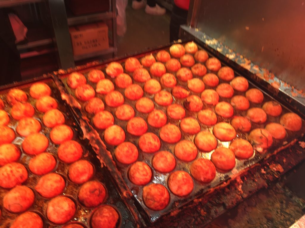 No dia seguinte, como ainda estou com jet-lag, só acordo ao meio-dia, e saímos logo para o pequeno-almoço. JB me leva a TAKOYAKI WANAKA SENNICHIMAE, um endereço muito famoso em Osaka para testar seu famoso Takoyaki, feito com polvo, creme e ovo que parece ser uma especialidade de Osaka