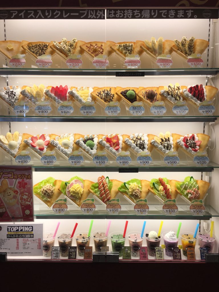 As panquecas também estão disponíveis, mas são 1000 vezes mais consistentes do que as encontradas na França. A prova está nos modelos de massas e polímeros (a propósito, todos os restaurantes mostram modelos de seus pratos de polímeros como este, ajuda muito os turistas)