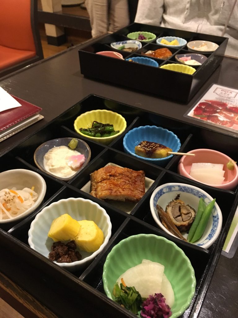 JB e eu escolhemos nos instalar em um restaurante mochi shop porque o bento deles me dá muita inveja