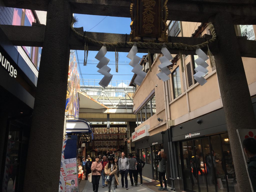 É muito pequena, é uma rua pequena, não muito larga e coberta, com cerca de 500m de comprimento. Mas todas as lojas dos dois lados da rua vendem coisas de grande interesse para os turistas: espetos, mochis, lembranças de todos os tipos, vegetais em conserva para comer com arroz, pastelaria típica de Quioto… tudo é tentador!