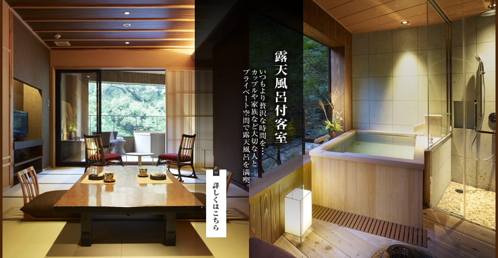 Para este ryokan, tínhamos duas opções: uma sala como a escolhemos, com livre acesso a um público no final do corredor (homem/mulher separado). Ou um quarto com um onsen integrado na varanda. A diferença de preço é tão grande (100 euros) e algumas opiniões são um pouco negativas (cheira a esgoto, o banho não estava tão limpo, etc. ). – bem, não sei se é verdade) que pensamos que seremos capazes de nos contentar com um público. De qualquer forma, mesmo com um soldado raso, não vamos passar uma eternidade lá dentro. Aqui está uma foto de uma sala com um quarto privado: