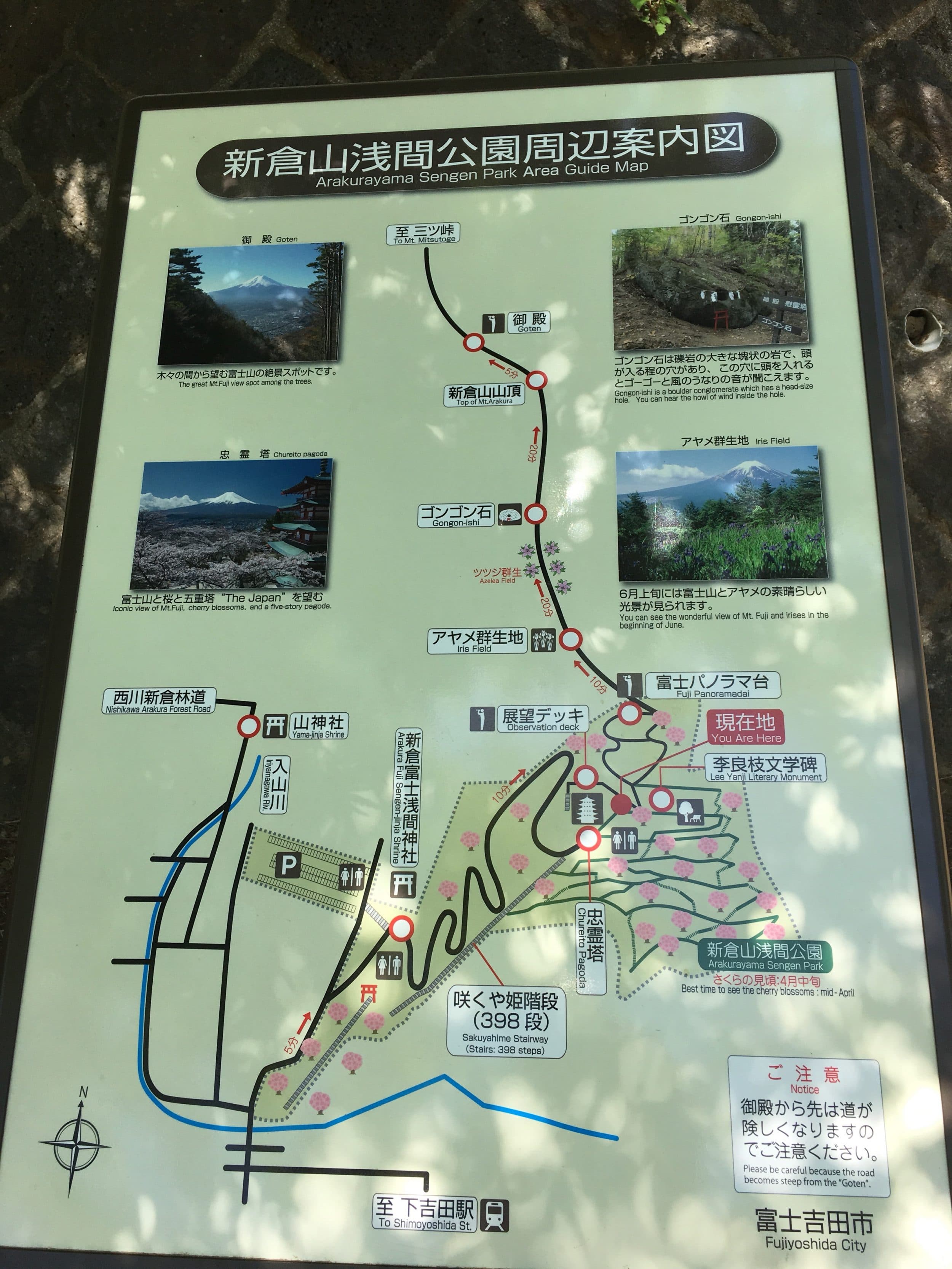 Pequeno ponto de acessibilidade: é possível subir ao pagode Chureito em cadeira de rodas (há uma rota mais longa ao lado das escadas), mas não será possível subir até a plataforma acima do pagode. Assim, você verá o Monte Fuji, mas apenas parcialmente.