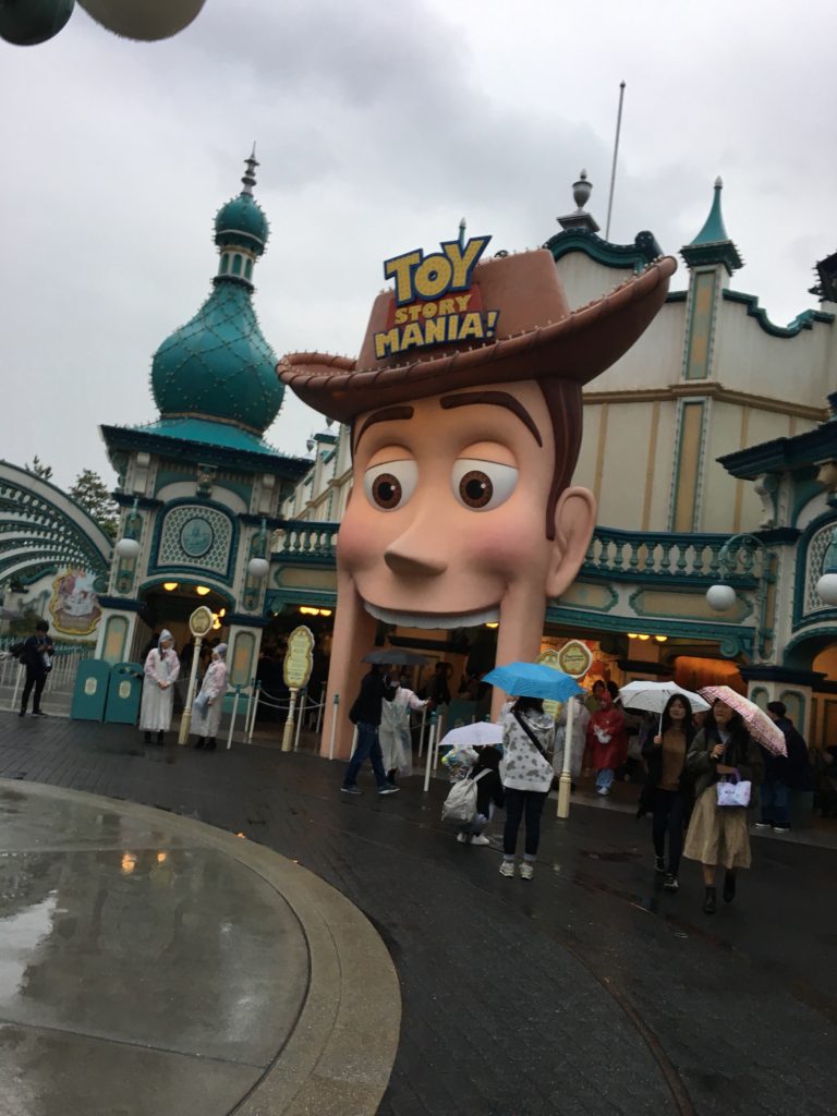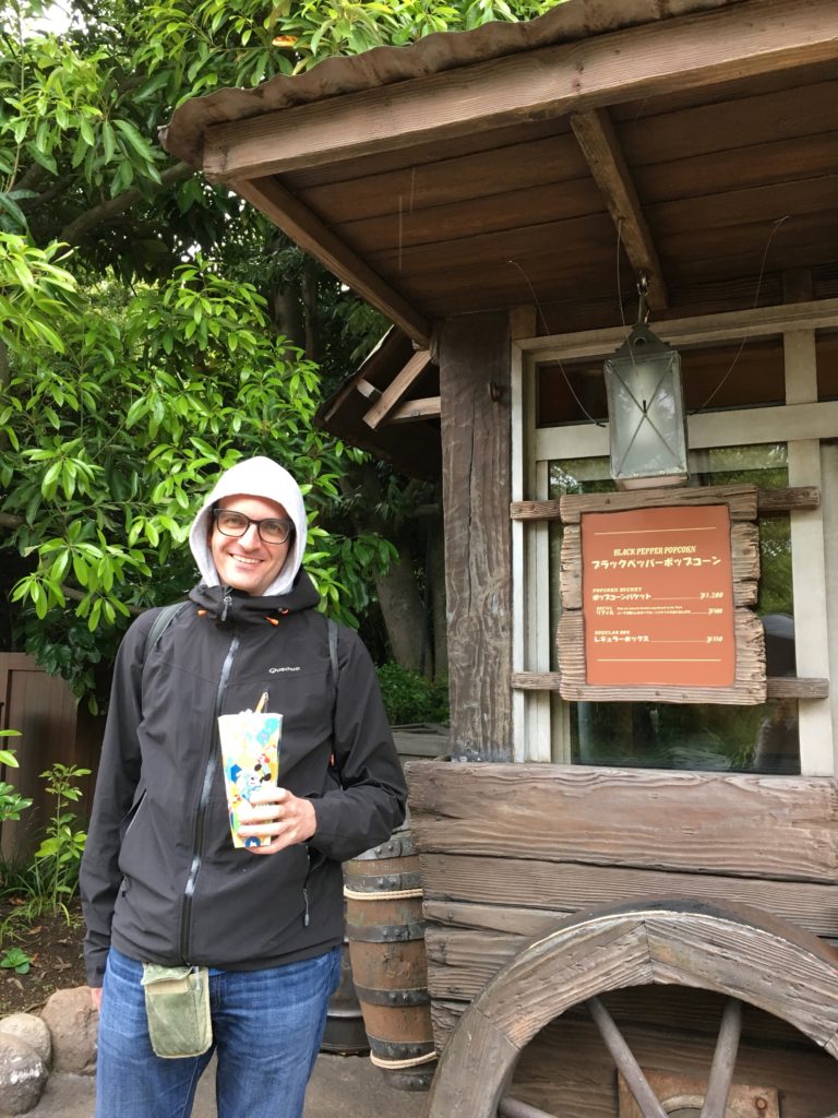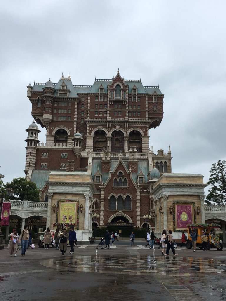 Após nossa viagem de ida e volta ao Monte Fuji e longas horas no ônibus de volta a Tóquio no meio da Golden Week, JB está cada vez menos motivado para ir a um lugar lotado, mas eu o convenço a ir lá após a Golden Week e mais durante a semana. Então é para me agradar que ele compre os bilhetes online, os tenha impressos num 7eleven e é debaixo de um pouco de chuva que chegamos à estação de Maihama.