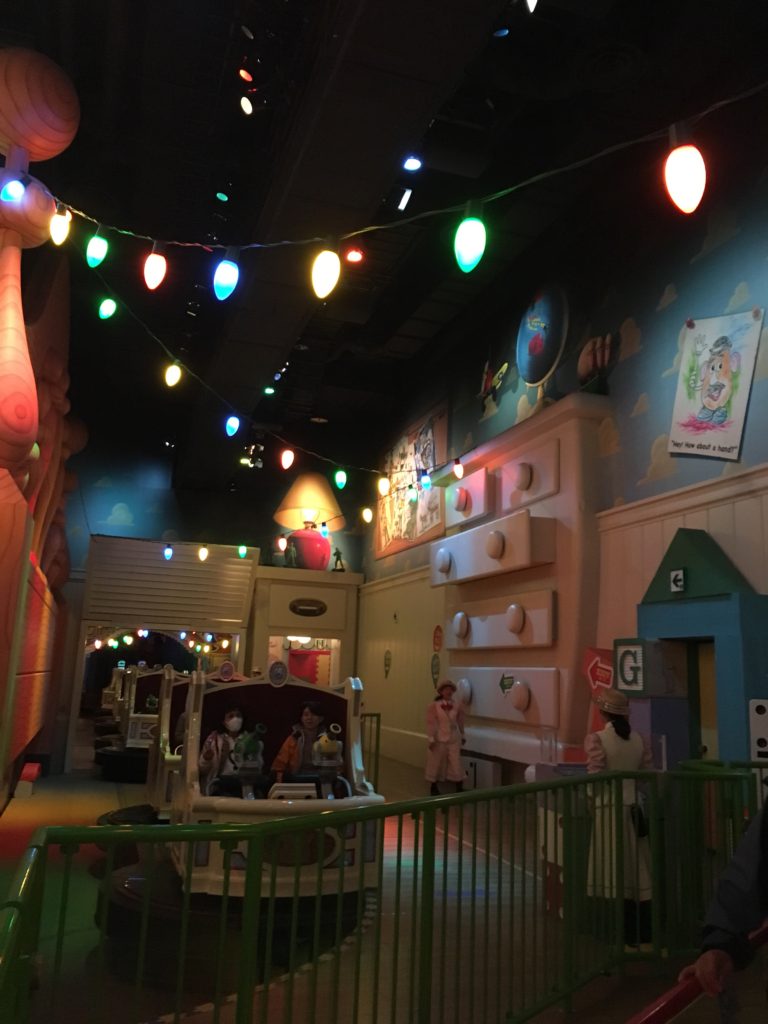 Esperamos na fila até chegarmos ao quarto do Andy. Repara no tamanho da cómoda dele.