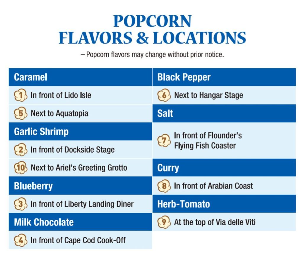 Eles são muito, muito bons!!! Com um travo um pouco apimentado. Por apenas 360yen. Algumas pessoas até compram grandes baldes de pipocas em forma de Mickey que podem pendurar ao pescoço e encher por um preço moderado, uma vez terminadas.