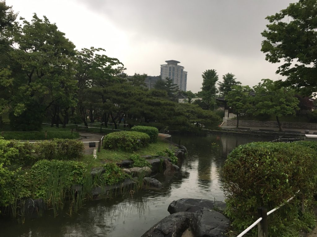 Estamos a seguir em frente. É muito bom ter um espaço verde como este em Seul