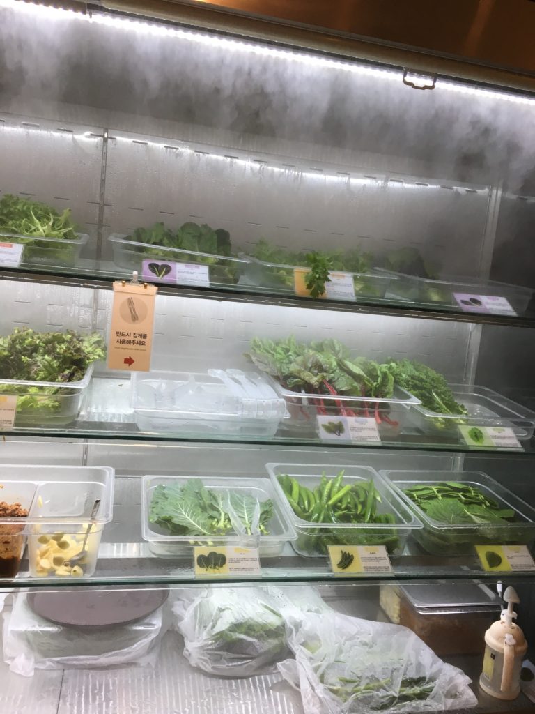 Uma cadeia de restaurantes onde você pode pedir bulgogi para compartilhar e escolher qualquer tipo de salada para comer (você coloca carne e molho na salada e enrola para comer)