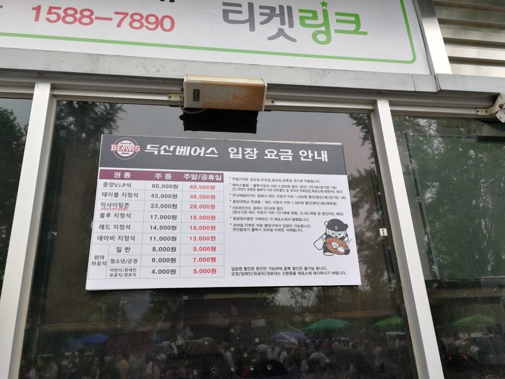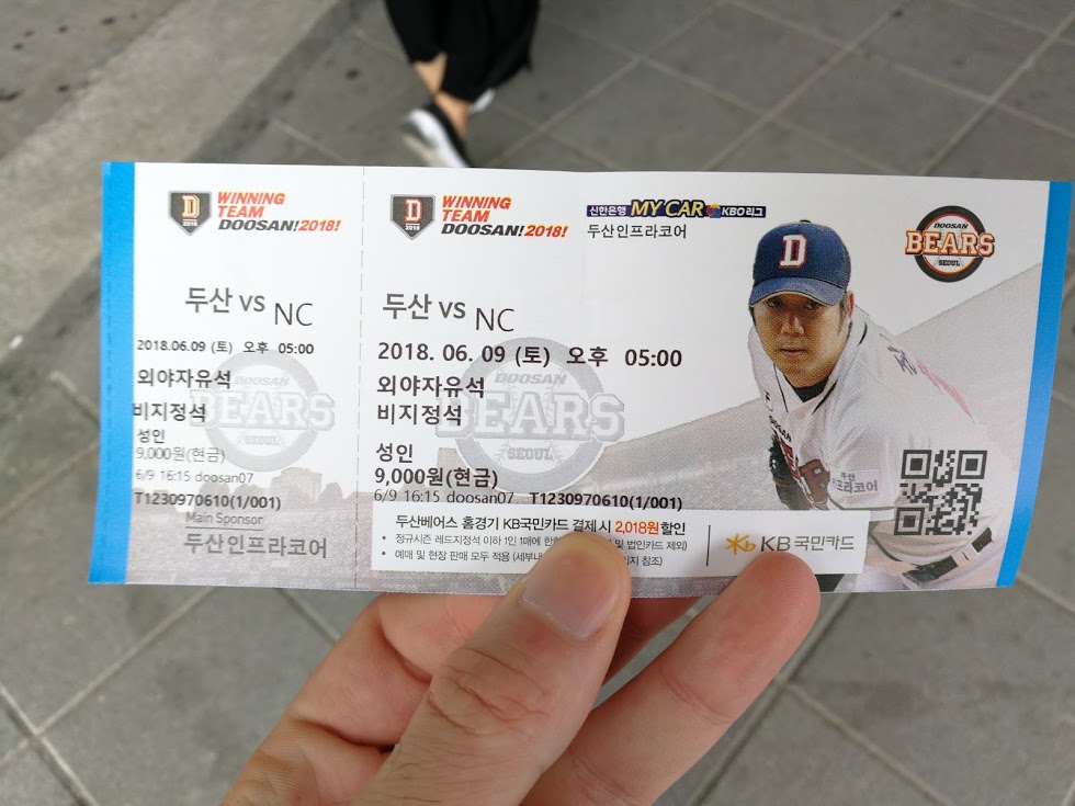 Então eu me encontro com um bilhete do setor verde, os piores lugares com um preço muito modesto de 9.000 won