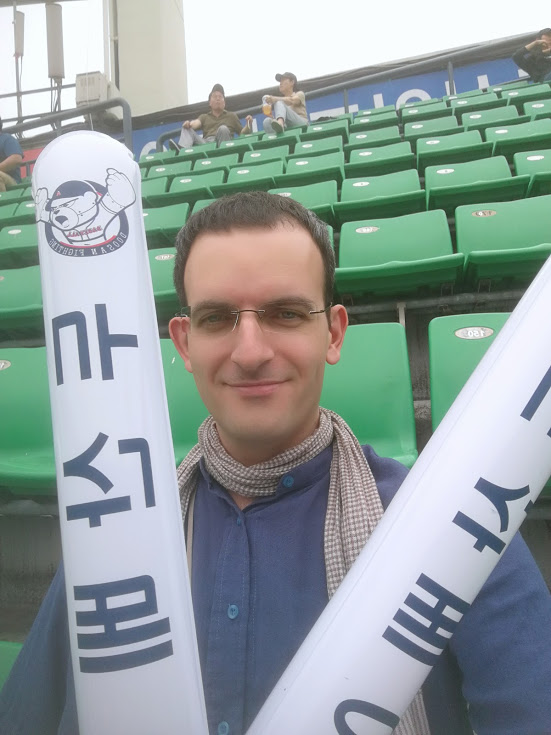 Depois de futebol na Argentina, futebol americano na República Tcheca, jogos de boxe tailandês e treino de sumo no Japão, o beisebol foi descoberto na Coreia do Sul