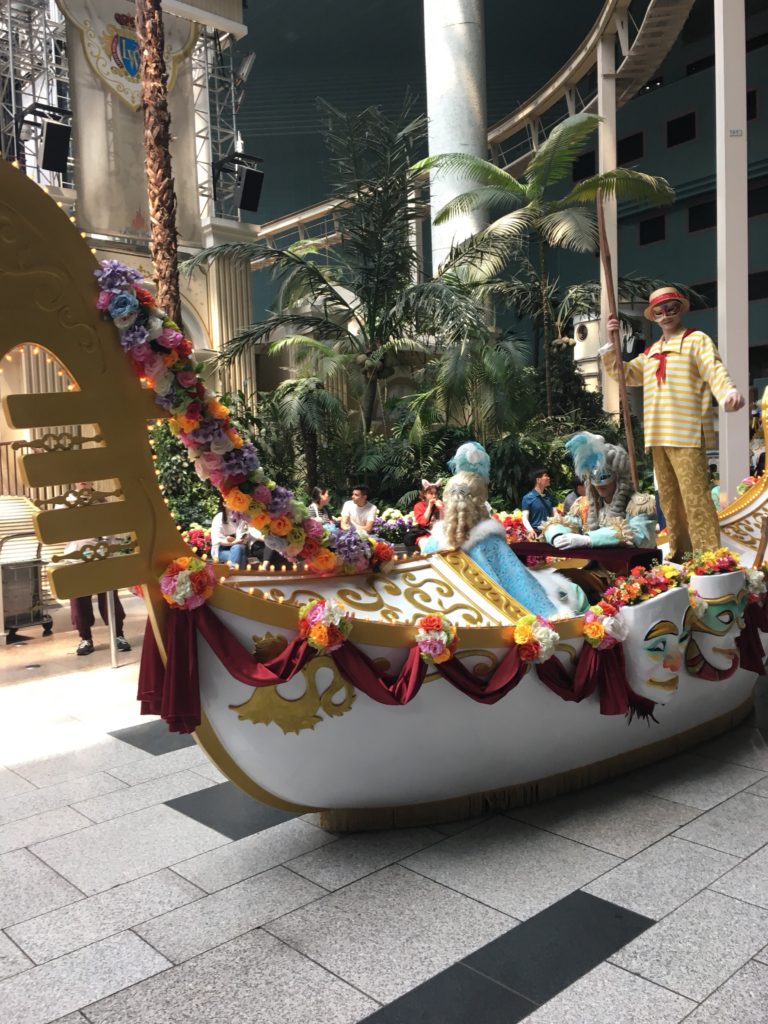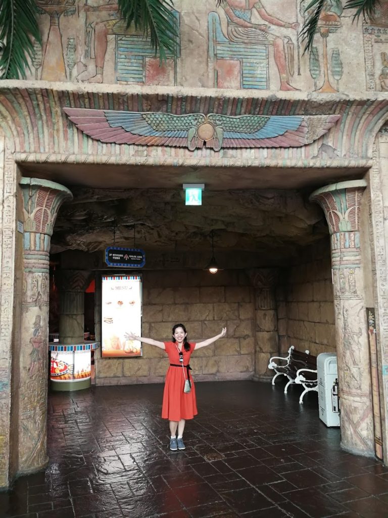 Está na hora do almoço, pois a maioria das atracções principais estão fechadas à hora do almoço. Decidimos tomar um bufete “all-you-can-eat” (de saladas e outros pratos saudáveis). Os restaurantes deste andar comunicam com o verdadeiro centro comercial => para que possam servir tanto os visitantes do parque como os que estão a fazer compras. Matar dois coelhos de uma cajadada só!