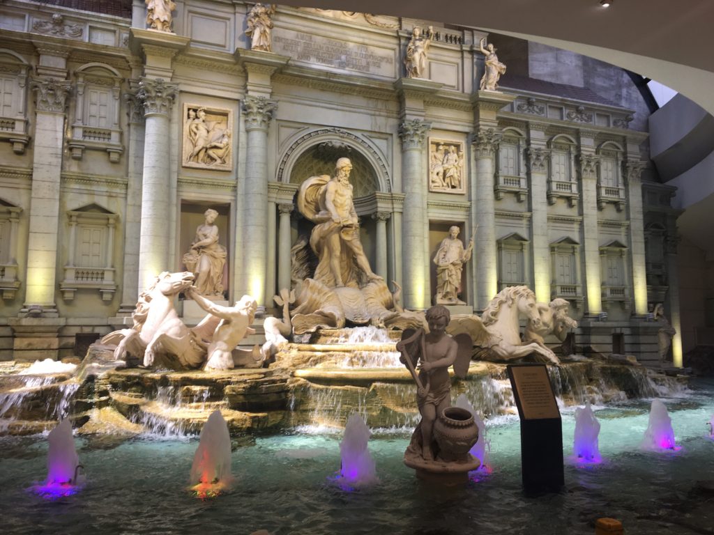 No entanto, ao sairmos do metrô perto da Lotte World (saída 4 da Estação Jamsil), vemos uma fonte (cópia da que está em Roma)