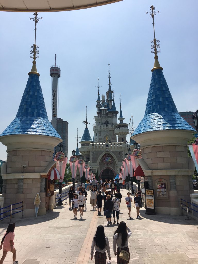 Em Seul, não há nem Disneyland nem Universal Studio, mas dois outros parques de diversões que nunca ouvi falar: Lotte World e Everland. Como Everland está mais longe de Seul com (quase) uma montanha-russa, optamos por ir ao Lotte World, que tem a vantagem de estar na própria Seul e ter um lado de conto de fadas como eu gosto