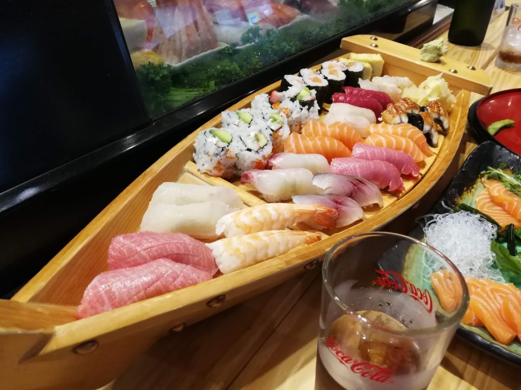 É assim que termina o nosso primeiro dia de visita. Jantamos em um restaurante japonês, que é tão bom quanto no Japão e voltaremos várias vezes (enquanto ficamos apenas uma semana em Jeju looool). O restaurante chama-se Sushi Hongsam (ou Sushi Red Ginseng). Este barco de sushi custou-nos 52.000won (+ muitos pratos complementares, sopas miso, arroz, acompanhamentos…). Eu o recomendo!