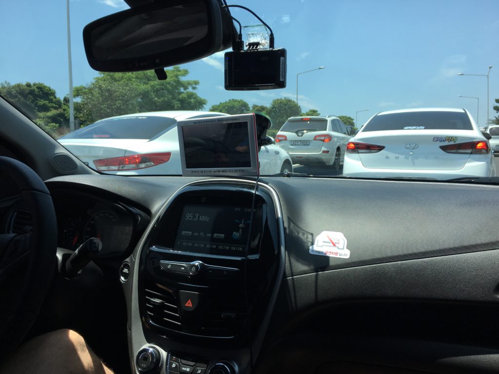 Surpresa, eles nos dão um Chevrolet, automático também! Com um GPS em inglês que é demasiado forte (mostra todas as câmaras de velocidade e encontra todos os pontos de interesse em Jeju). Tendo encontrado um mapa dos passeios diários em nosso hotel no dia anterior, eu apenas baseei meu itinerário nos passeios diários, zapping todas as coisas que eu não gosto (k-pop, museus, etc.)
