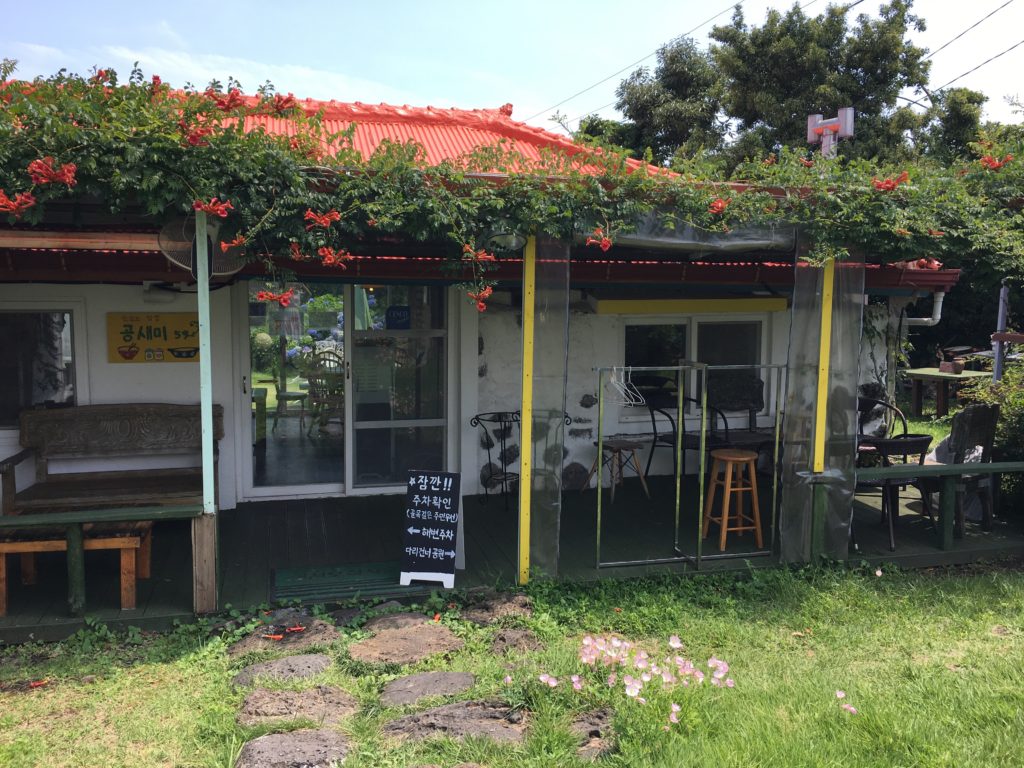 Da varanda você pode ver um caminho ao longo da costa, Jeju tem várias trilhas de caminhada como esta ao redor da ilha, que são chamadas de “ollegil”. O mais famoso é o número 1, no lado leste da ilha.