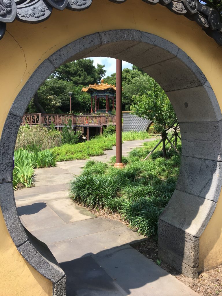 Há um pequeno jardim tradicional perto do parque de estacionamento, muito bonito