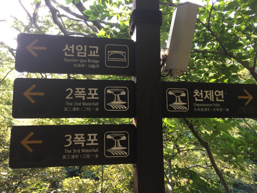 Depois visitamos Cheonjiyeon Falls, que não é tão bonita como nas fotos por causa da falta de água. No entanto, o lugar todo é acessível em cadeira de rodas (especifico esta informação porque me pedem de vez em quando) e há muitos recantos onde nos podemos sentar, é perfeito para casais/famílias. Se você não tem muito tempo, não venha aqui, a taxa de entrada também é de 2000won/pessoa