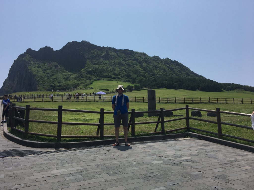 Alguns minutos depois, de carro, chegamos a Seongsan Ilchulbong, um local classificado da Unesco