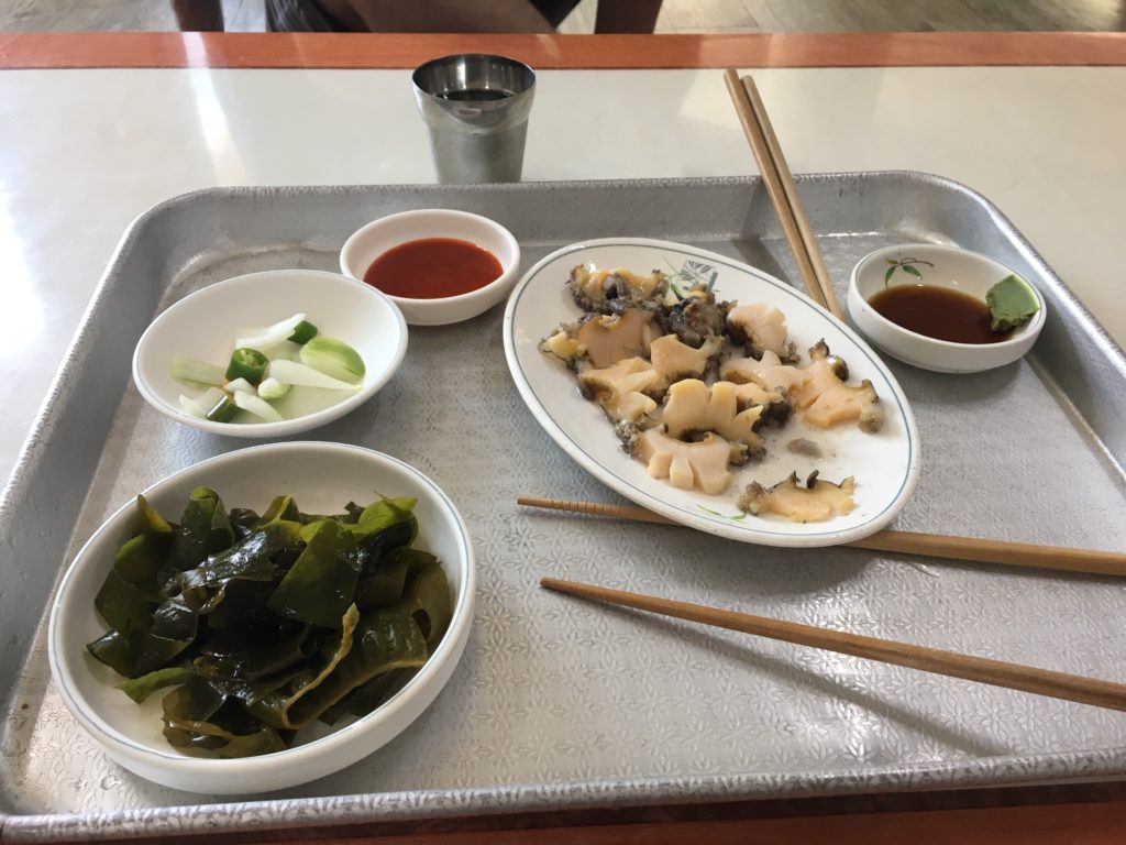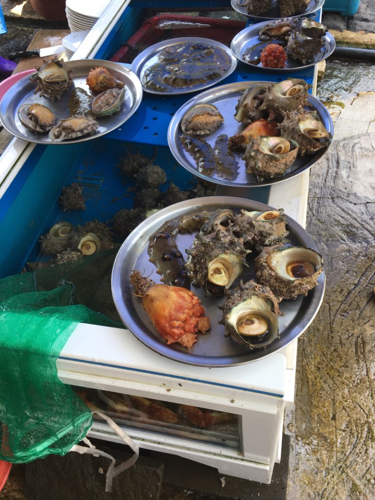 - Restaurante Haenyeo: 10.000won abalone. A partir de 30.000 ganhou a mini bandeja de frutos do mar crus (pagamento em dinheiro). 1.000 ganhou a bebida